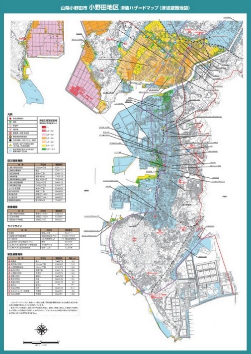 また山陽小野田市は、南海トラフ巨大地震や周防灘断層群主部の地震、日本海沿岸の地震で想定される最高津波水位といった情報を提供しています。