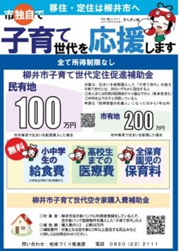 柳井市はパパ・ママ応援サイト「やないDE子育て」を運営するなど子育て世帯を応援しており、新築、不動産購入の補助も行っています。