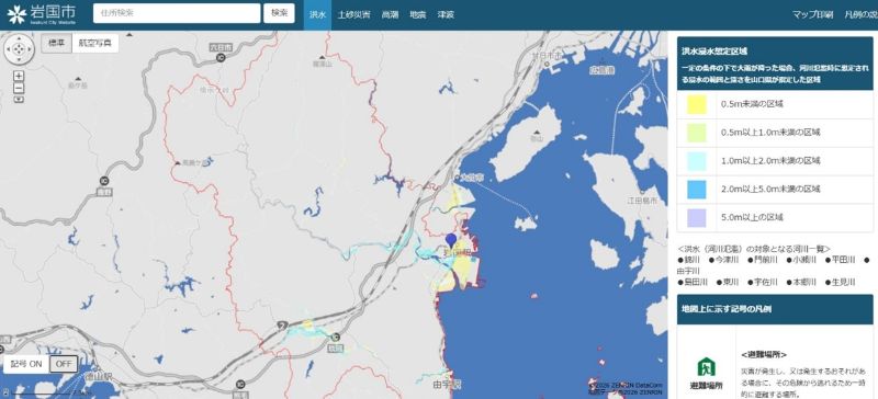 (2) 岩国市「Web版ハザードマップ」