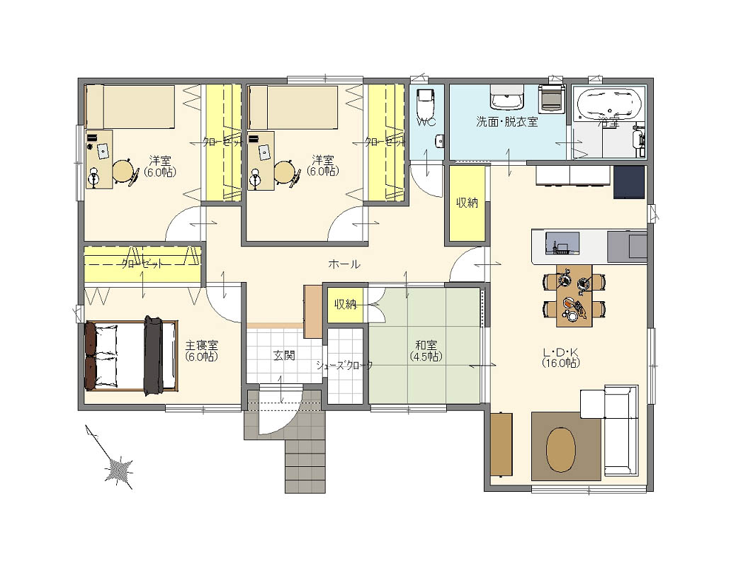 生活動線に合わせて収納を設置し、すっきりと整理整頓ができます!