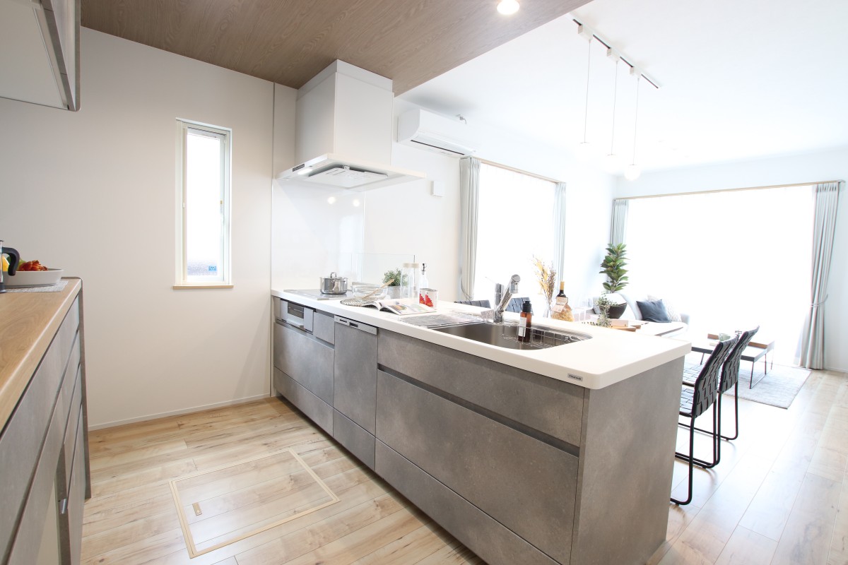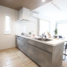 全体的にナチュラルテイストでまとめ、アクセントにグレーを採用することで高級感を醸し出しいてます。