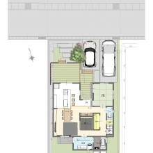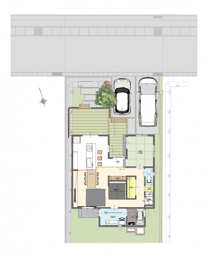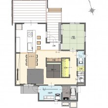 土間、LDK、ウッドデッキが緩やかにつながり、 家族同士が自然と会話が生まれる家となりました。