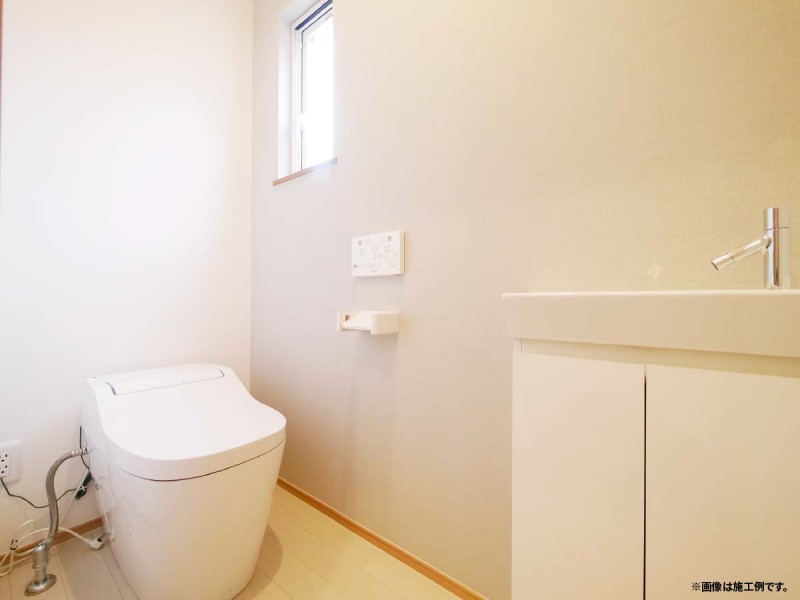 水周りはシンプルに清潔感のあるホワイトで統一。収納が付いて実用性も兼ね備えた造り。換気出来るよう、窓も完備。いつも清潔な空間であって頂けるよう配慮しました。