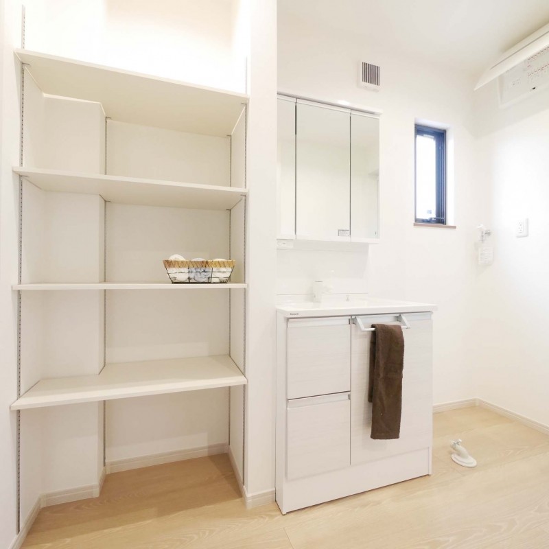 設備充実の洗面台はもちろんシャワー付き!!収納棚も完備!