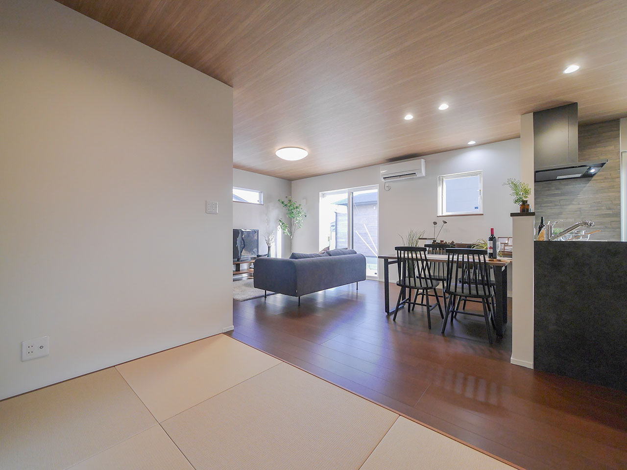 キッチンそばに和室やスタディコーナーを置くことで、家事をしながら家族と会話を楽しめる空間に仕上げています。