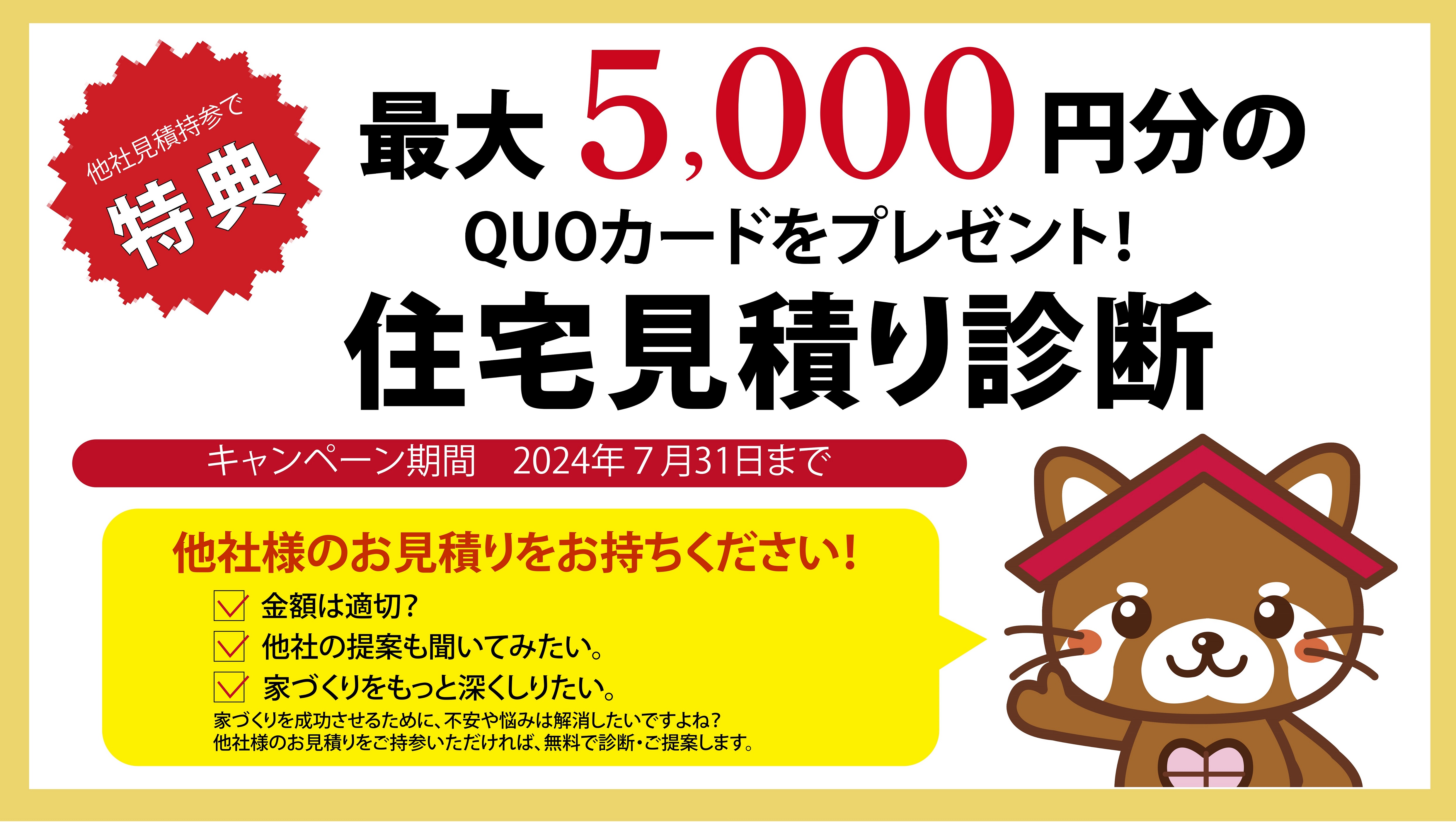 他社様のお見積もりをご持参頂ければ、さらにQUOカード5000円分を