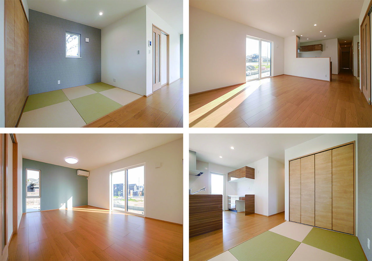 内観も外観も木目が素敵なナチュラルなトーンでまとめた、3LDK+畳コーナーの平屋です。