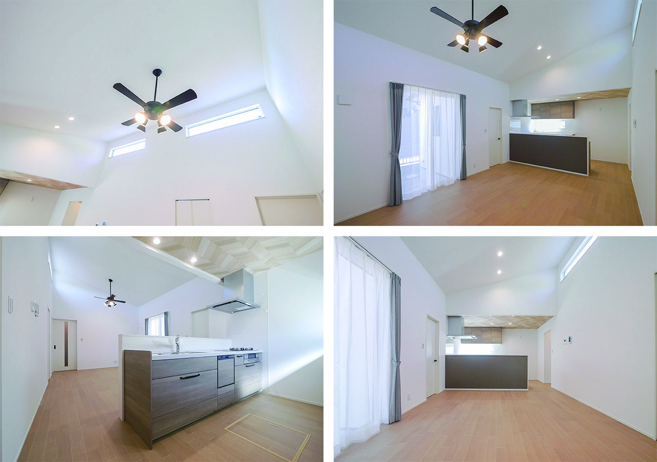 ★吹き抜け×勾配天井で印象的な空間に仕上げたリビングダイニング