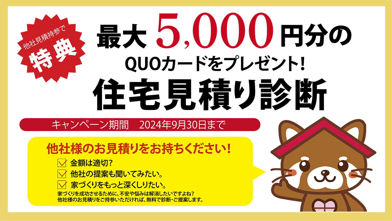 他社様のお見積もりをご持参頂ければ、さらにQUOカード5000円分を