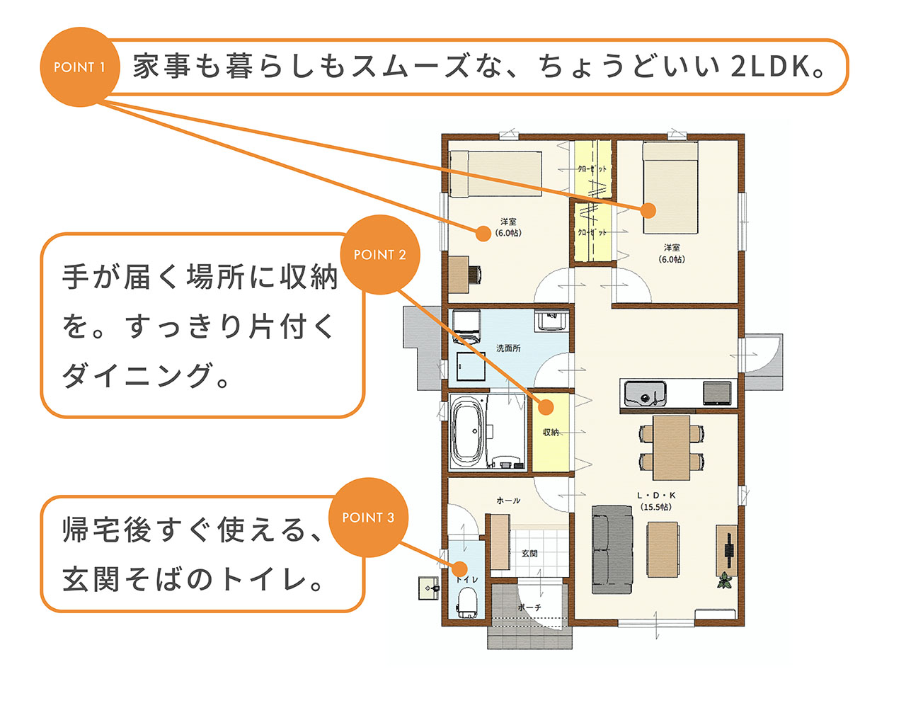 POINT1 家事も暮らしもスムーズな、ちょうどいい2LDK。