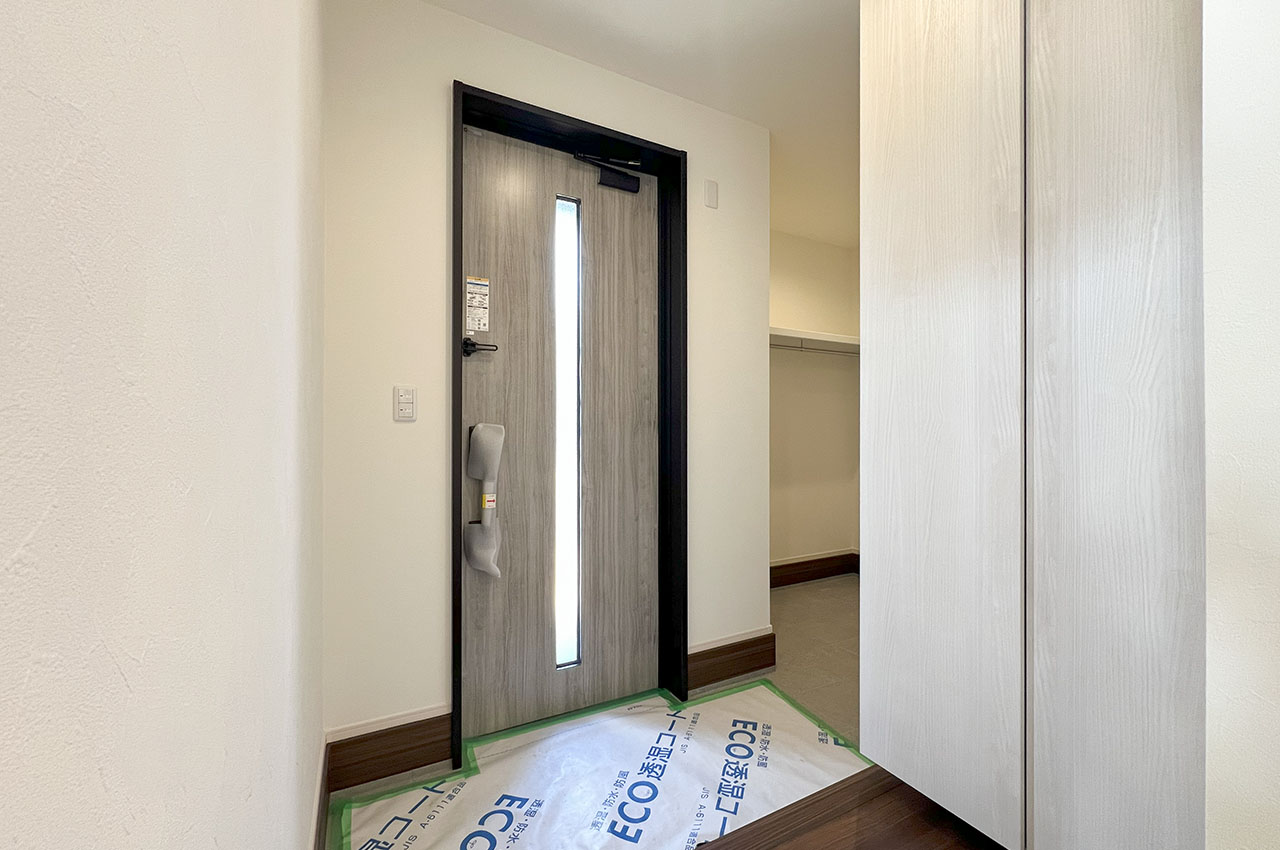 玄関→土間収納→パントリー→キッチンがつづく便利な動線。
