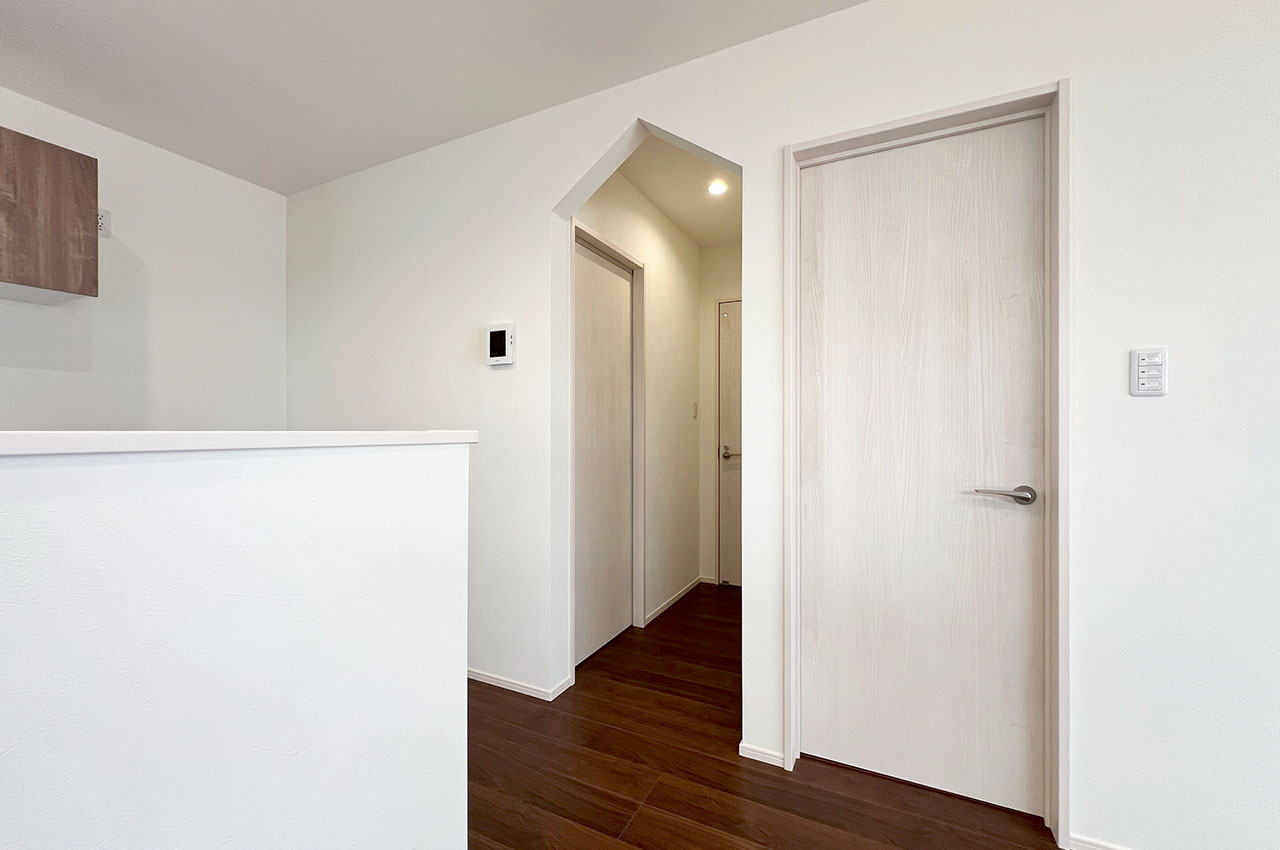 ナチュラルな木目とホワイト基調でまとめた空間に、三角垂れ壁でかわいらしさをプラス。