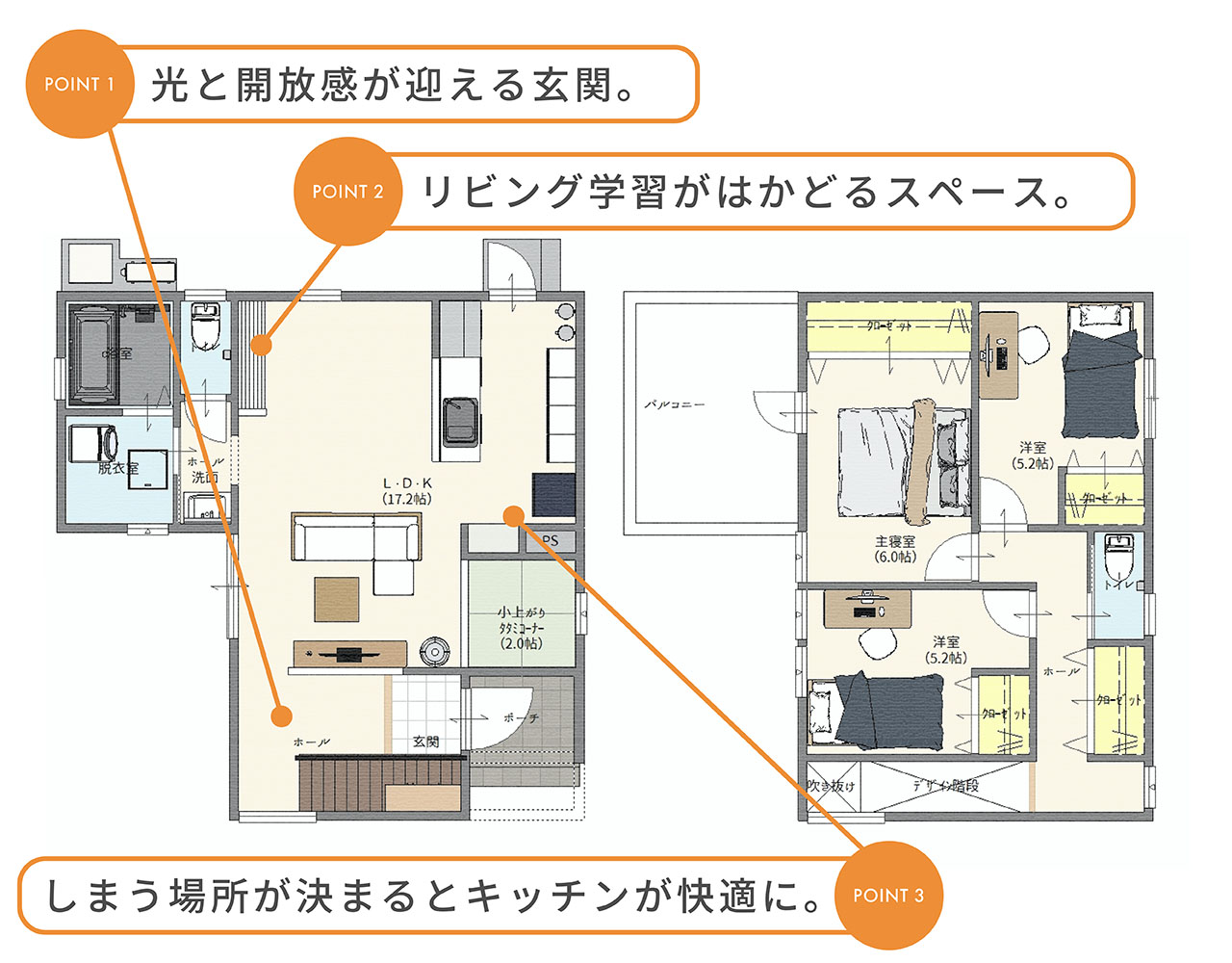 玄関を入ると、視線がぐんと広がる吹き抜け空間。
