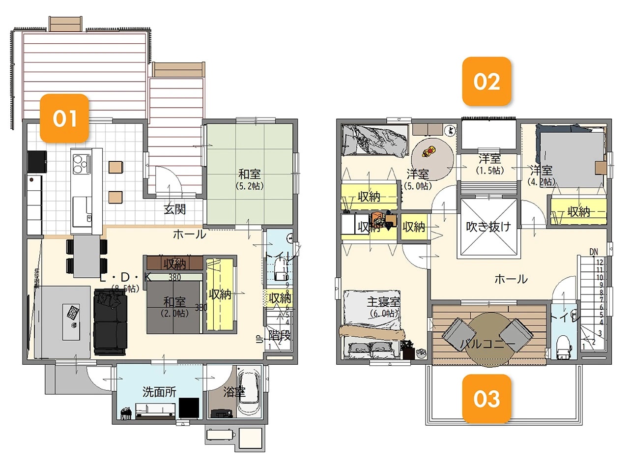 POINT 01 家の真ん中に、自然と集まる動線を。