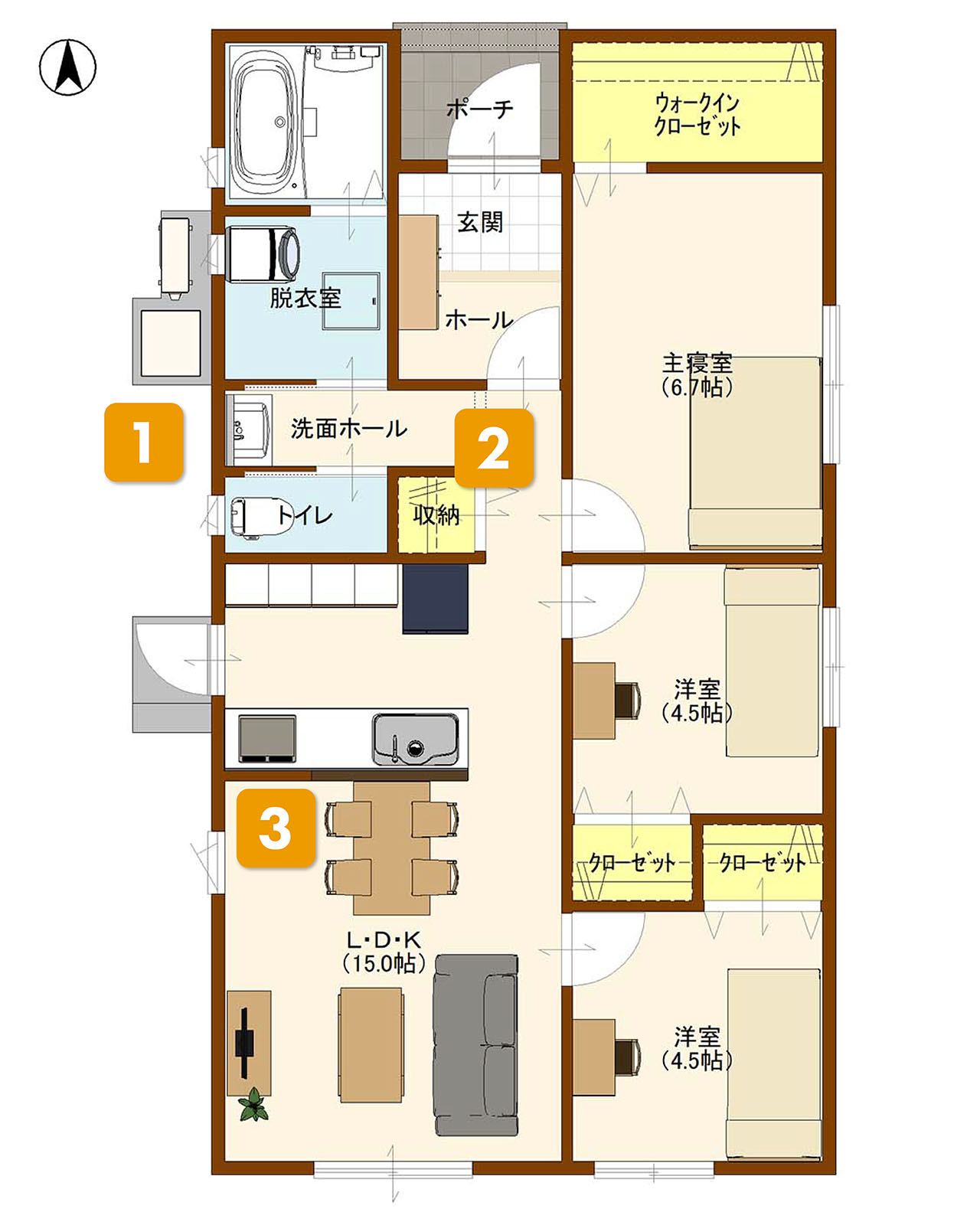 POINT1 暮らしの軸をひとつにまとめた間取り