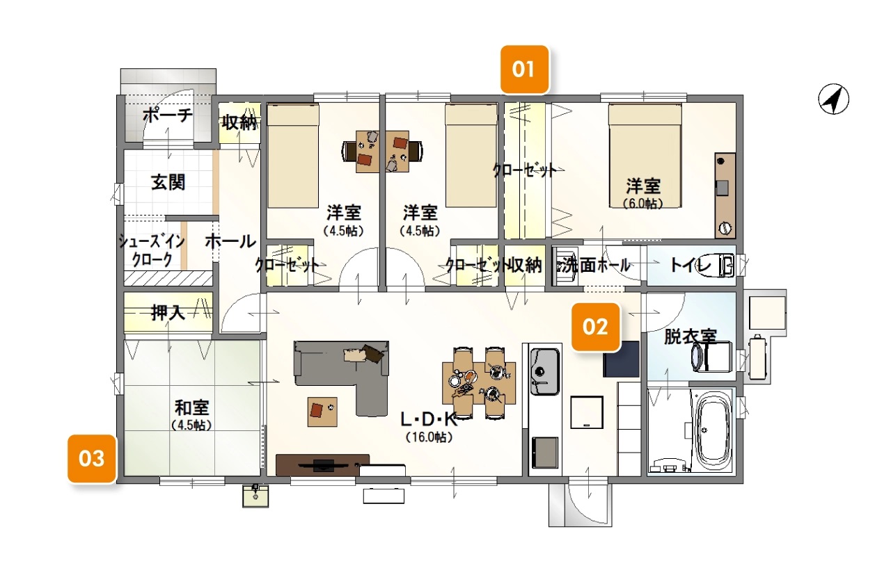 家族みんなの「朝」をサポートしてくれる間取りです。