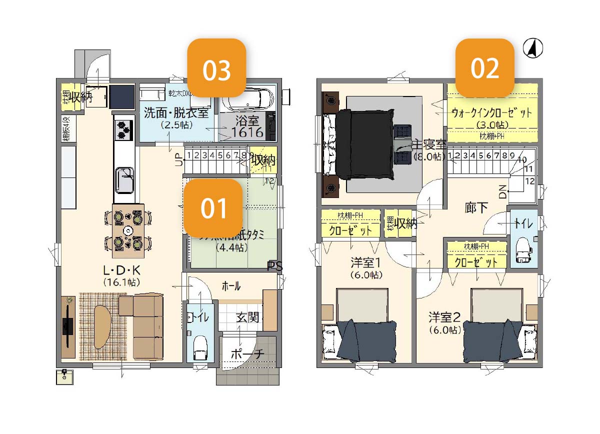 POINT 02 暮らしの中に、流れるような動線を。充実した収納計画で暮らしスッキリ