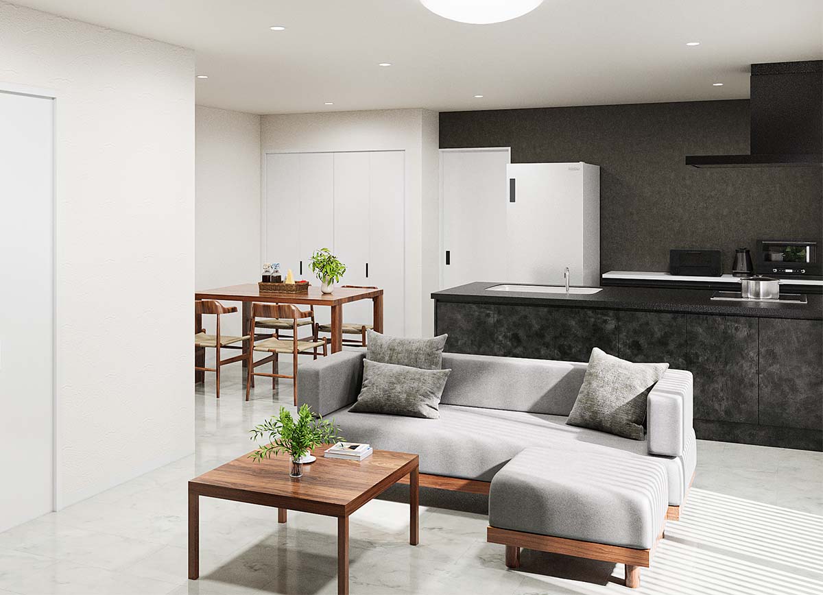 セラミックワークトップの美しさと耐久性を兼ね備えたキッチン。