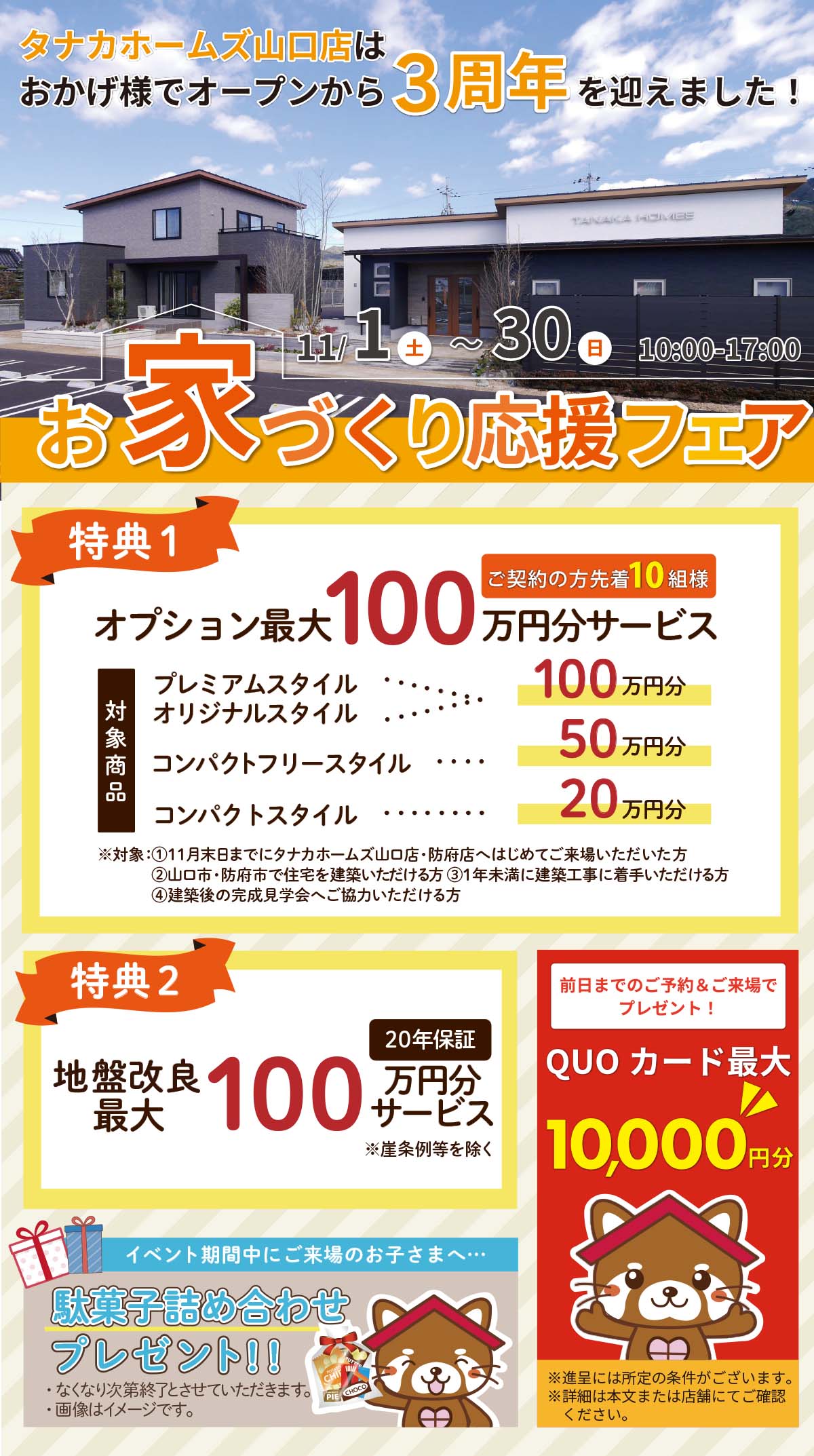 【おかげ様で3周年!】タナカホームズ山口店 お家づくり応援フェア in山口市
