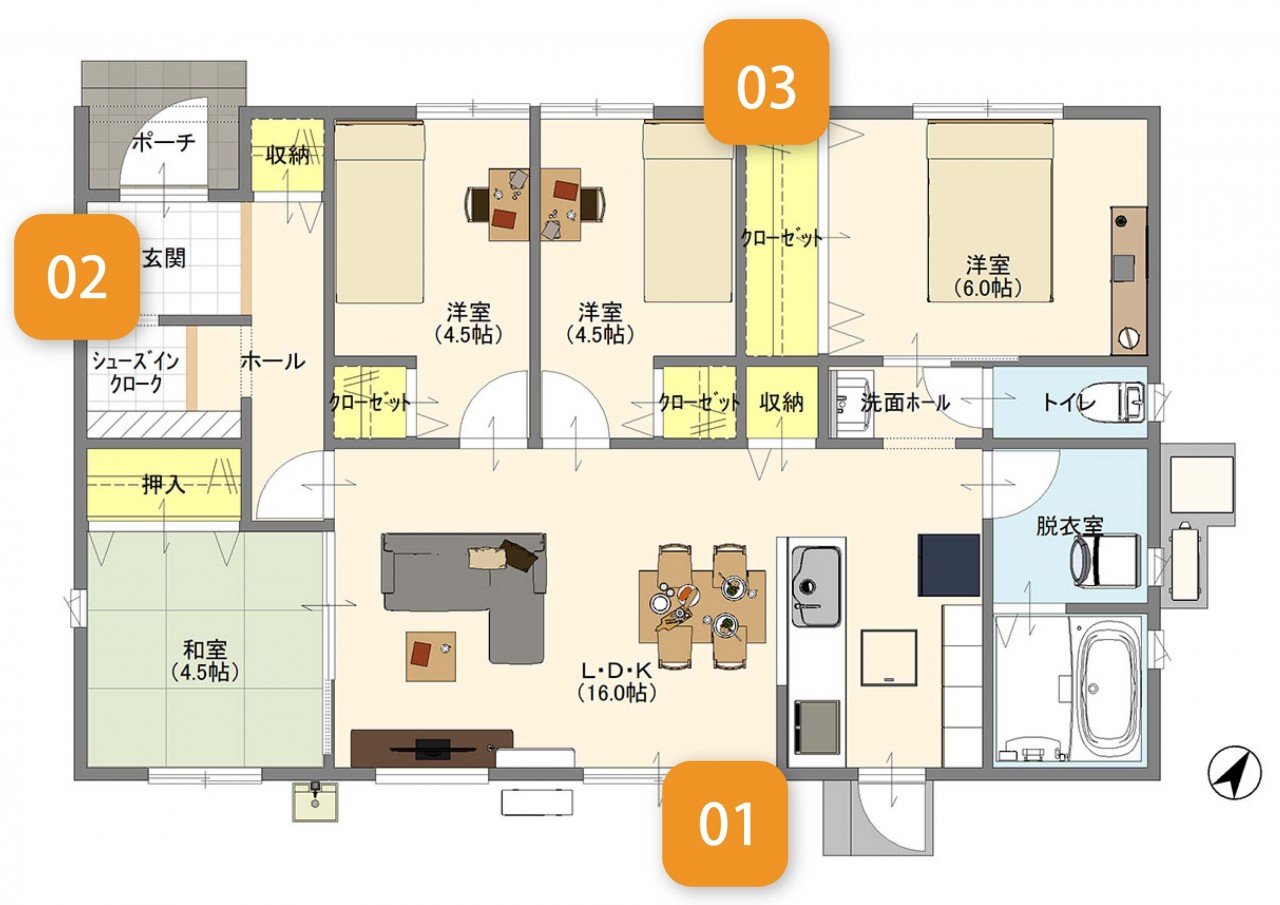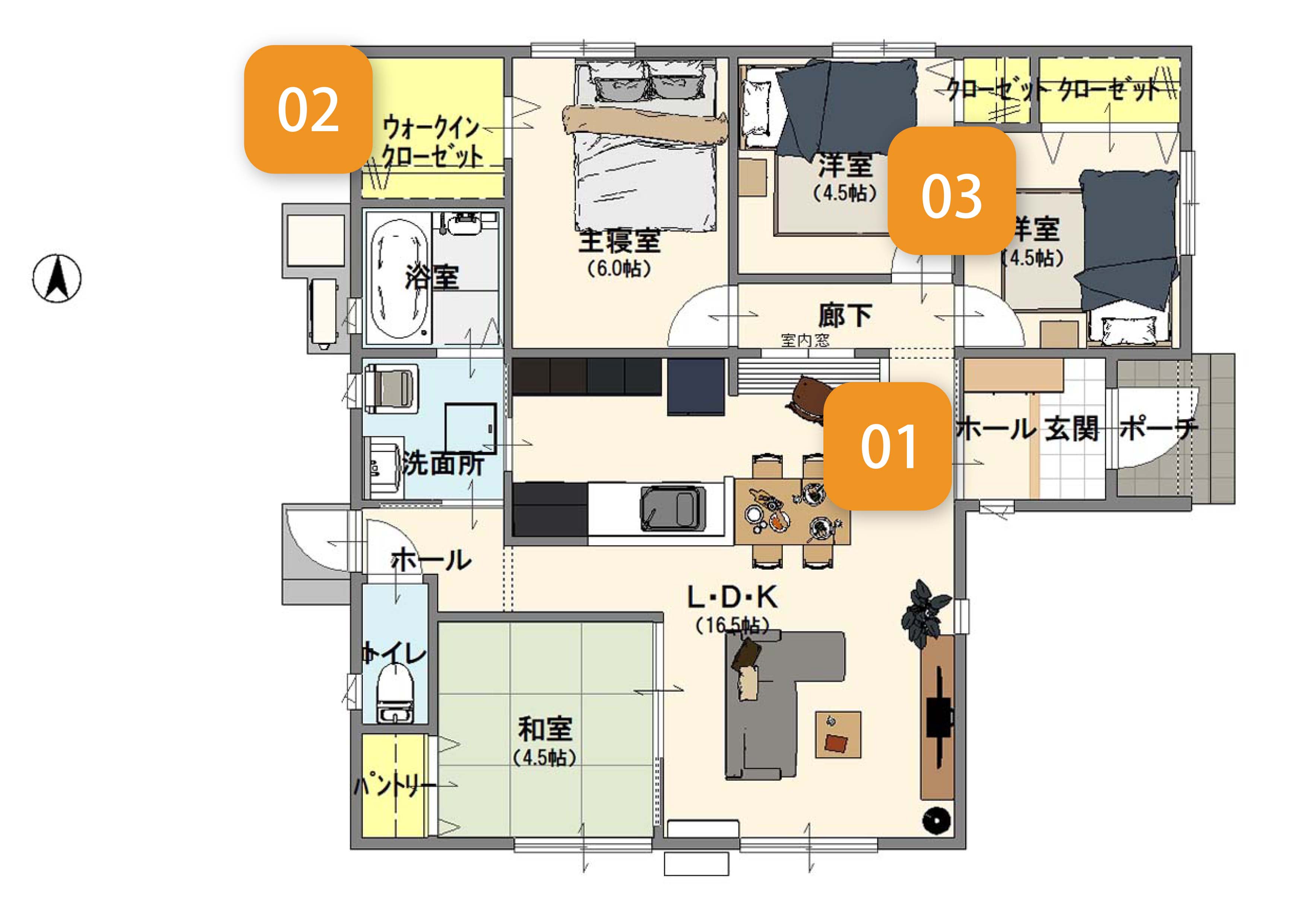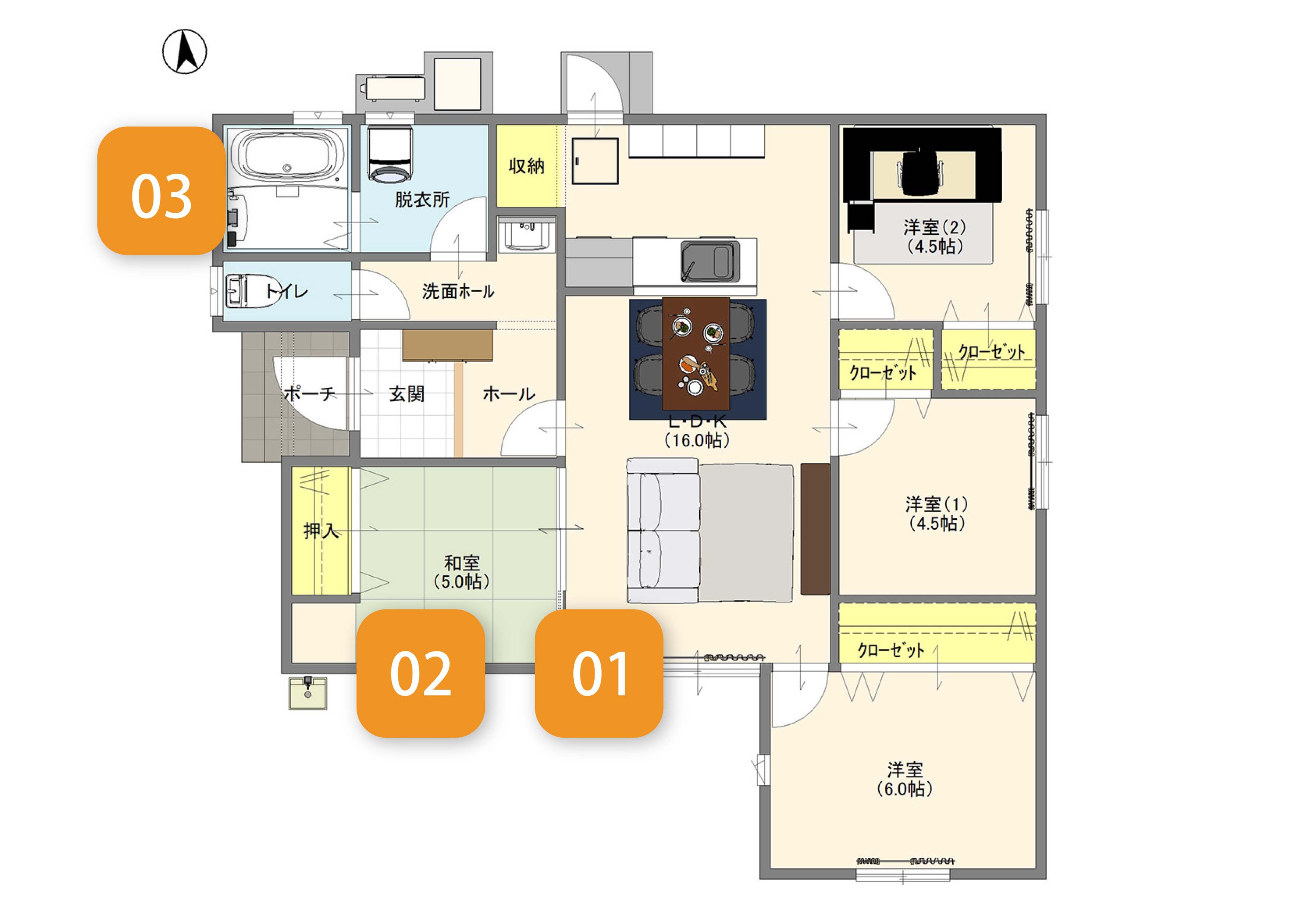 POINT 02 LDK+和室で広がる多用途のくつろぎ空間