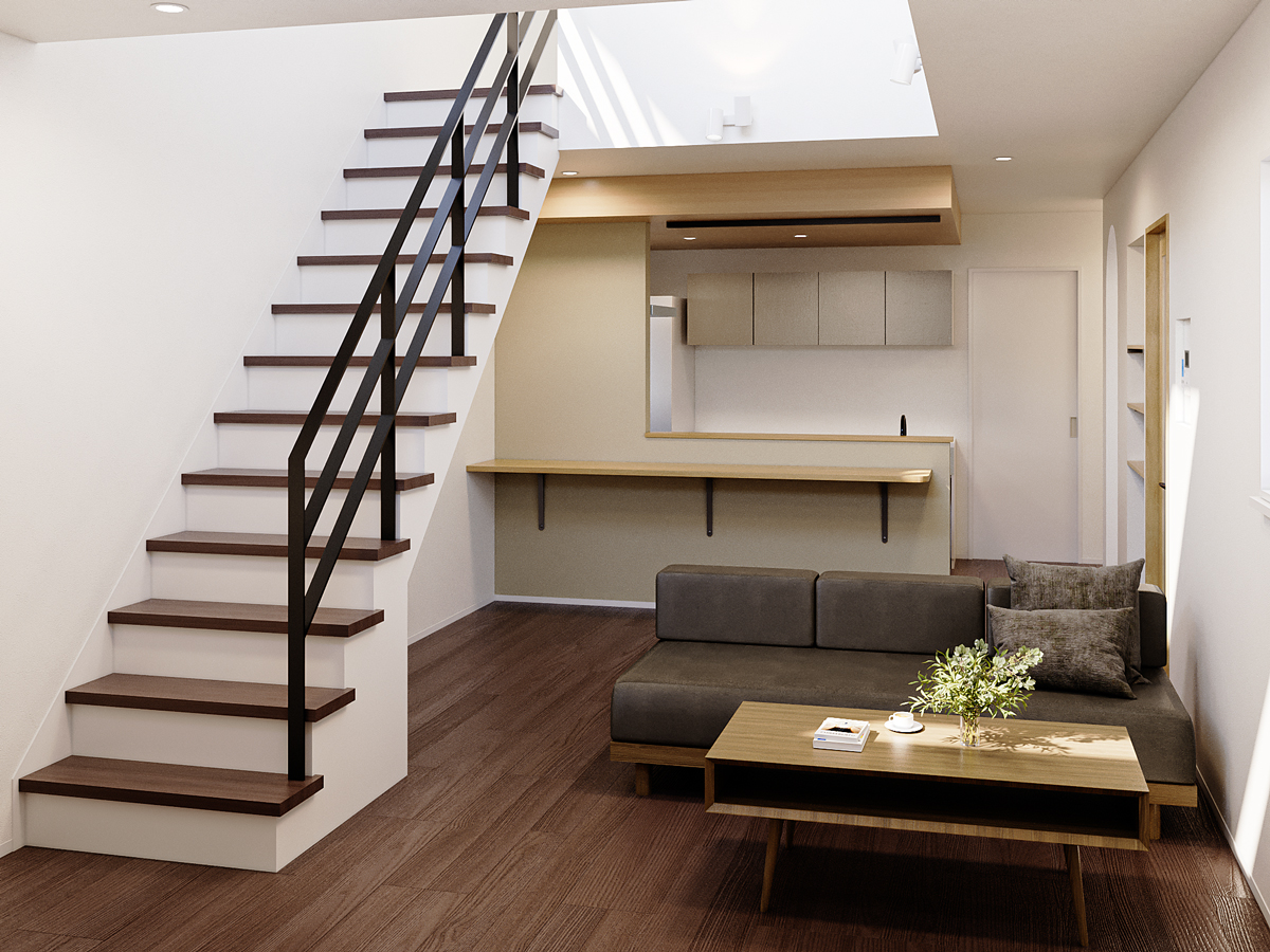 家族の気配が心地よくつながる、伸びやかな空間です。