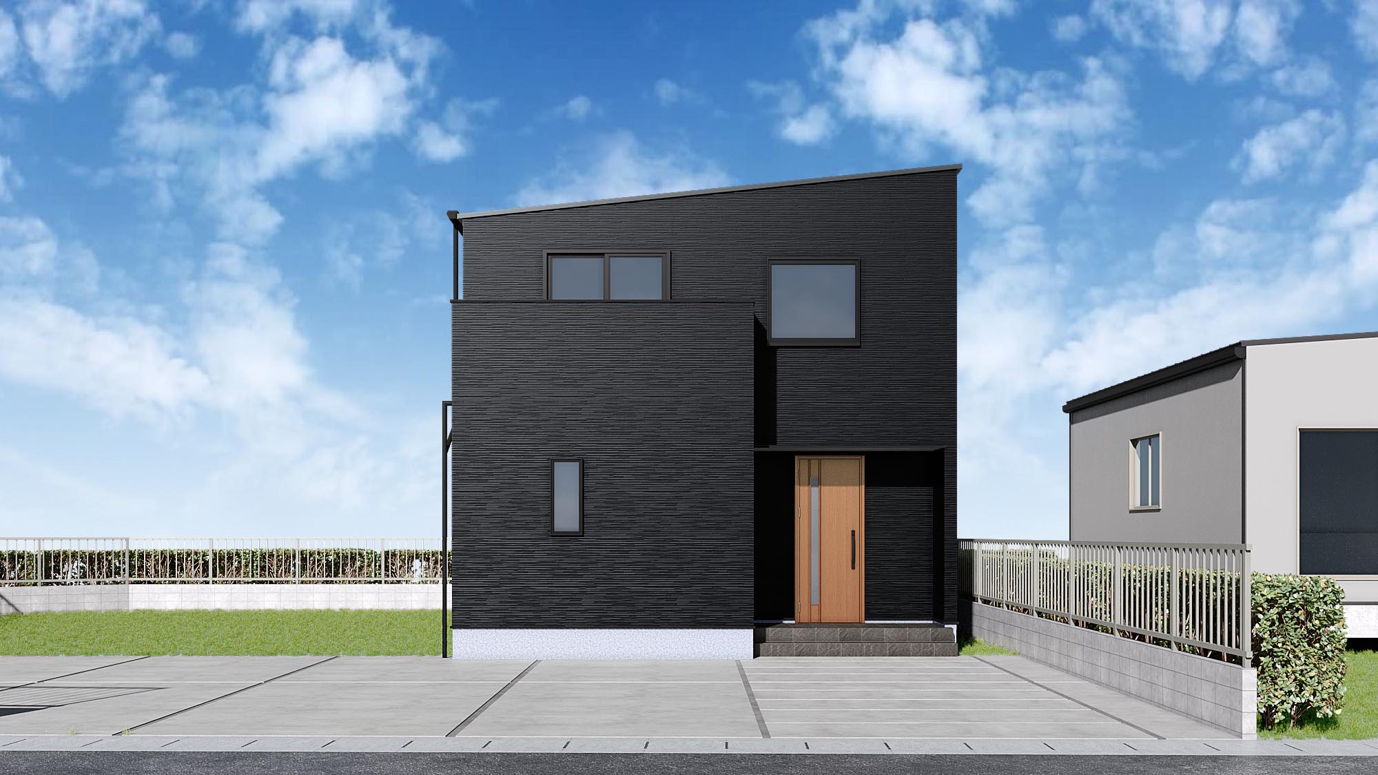 POINT3 黒の重厚感と木目が調和する、洗練された外観