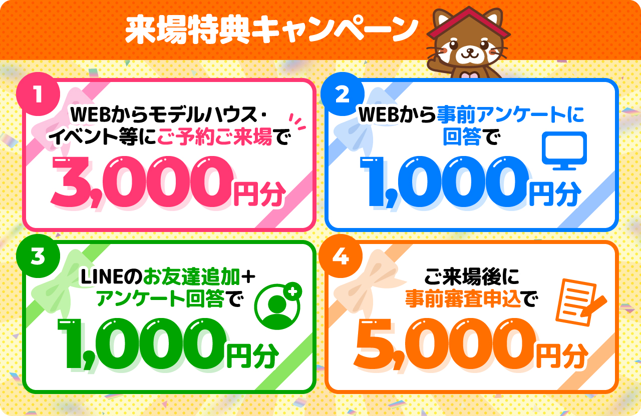 初めてタナカホームズへご予約ご来場いただくと、QUOカード最大10,000円分をプレゼント!
