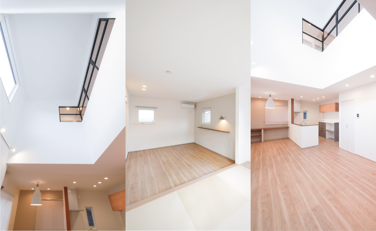 POINT 02 開放感と快適さを叶える、吹き抜けリビング