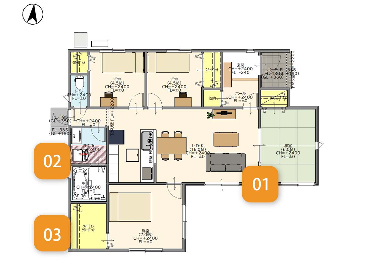 POINT 01 家族が自然と集まる16帖のLDK+和室つづき