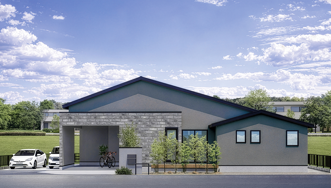 大きなガレージハウスが主役の平屋。