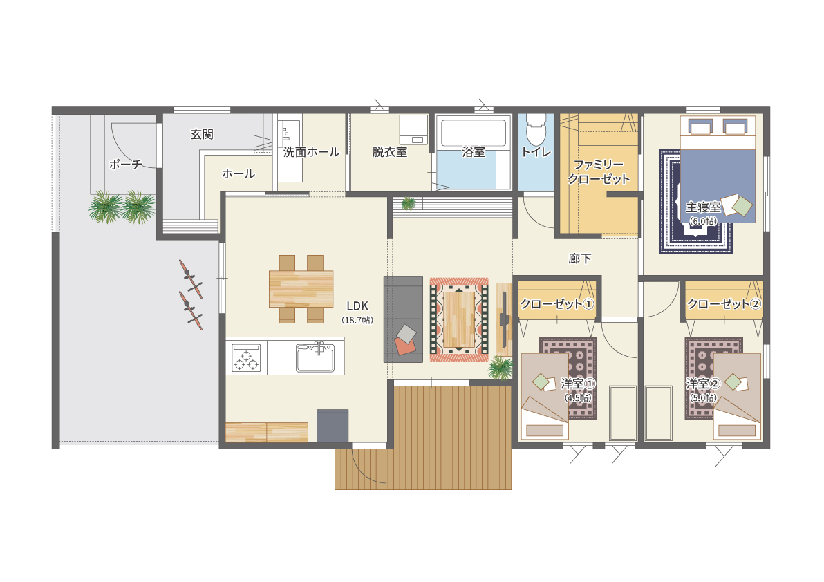 生活に寄り添った実用的な間取りの中に、遊び心を散りばめて。