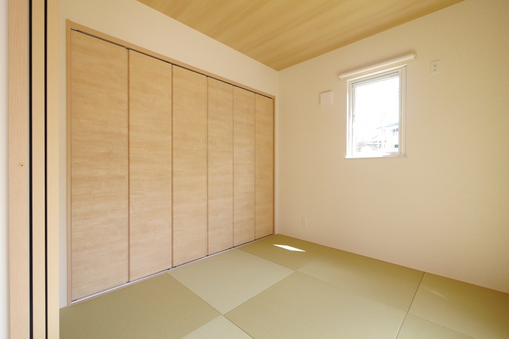 LDKはゆったり16帖。隣接する和室は来客時やお子さまの遊び場として活躍します。水まわりを直線にまとめた効率的な家事動線と、各所に設けられた収納が暮らしやすさを支えます。2階にはウォークインクローゼット付きの主寝室に加え、2つの洋室を完備。カウンタースペースはリモートワークや勉強に最適です。