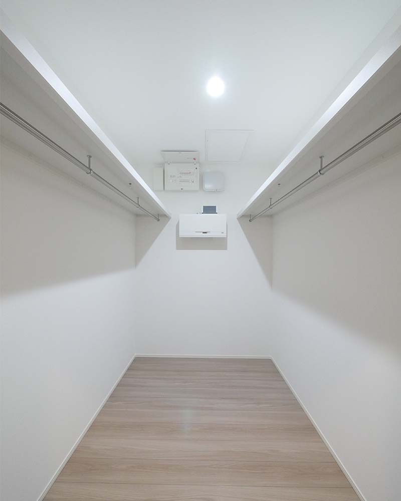 たっぷり収納できるウォークインクローゼット。衣類や季節物もスッキリ収まり、毎日の身支度が快適に。