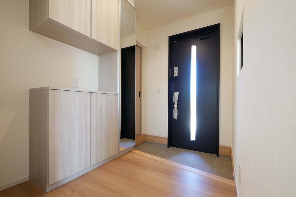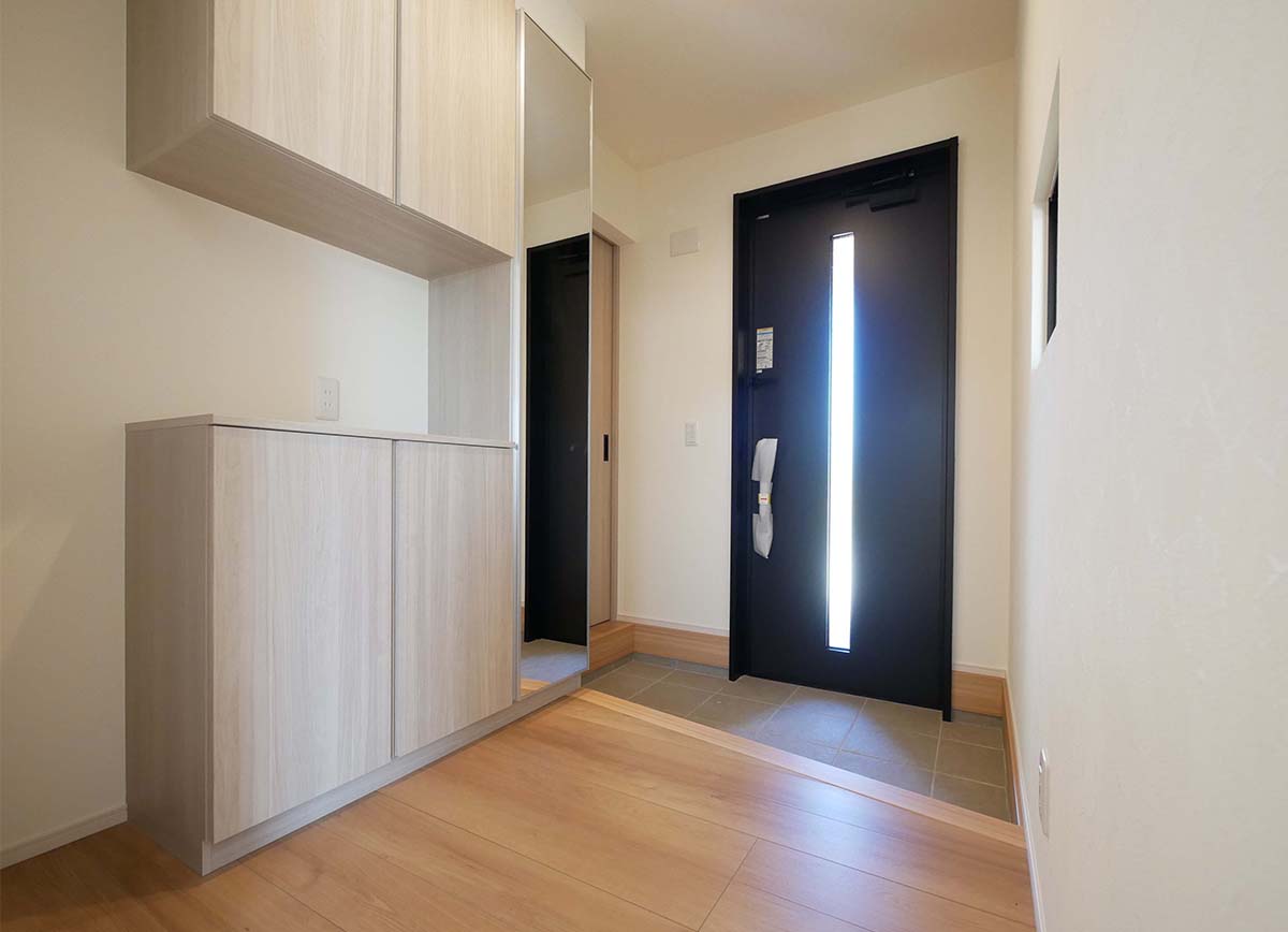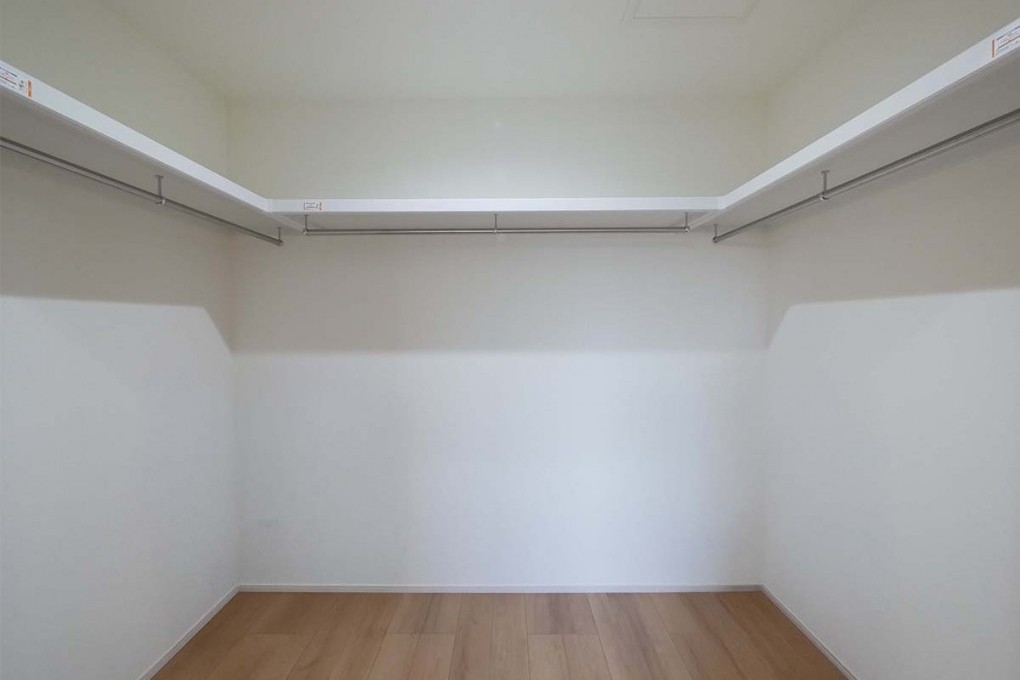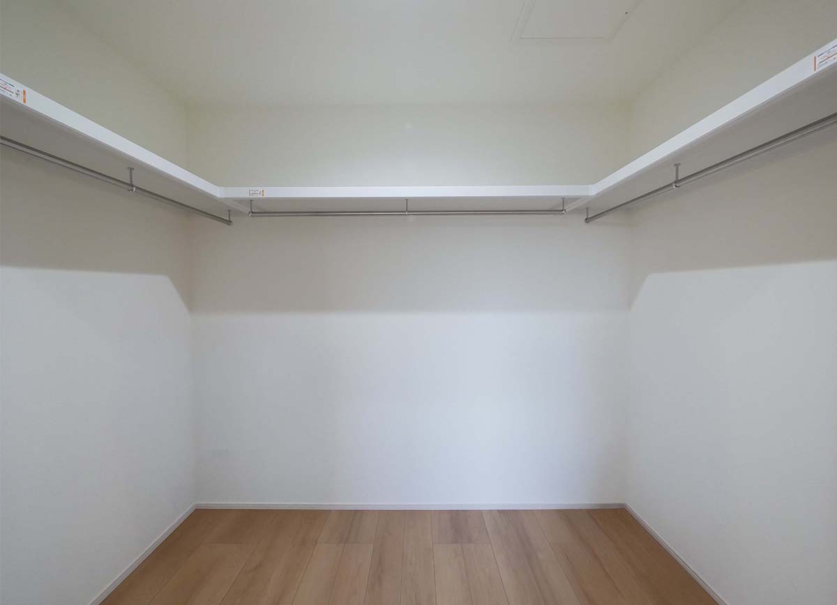 キッチン横に設けた大容量の可動棚収納。食材や日用品をすっきりと整理でき、家事動線をスムーズに保ちます。