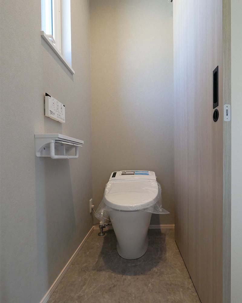 明るい採光窓が心地よい光を取り込むトイレ。シンプルな中にも上品さを感じる、清潔で快適な空間です。