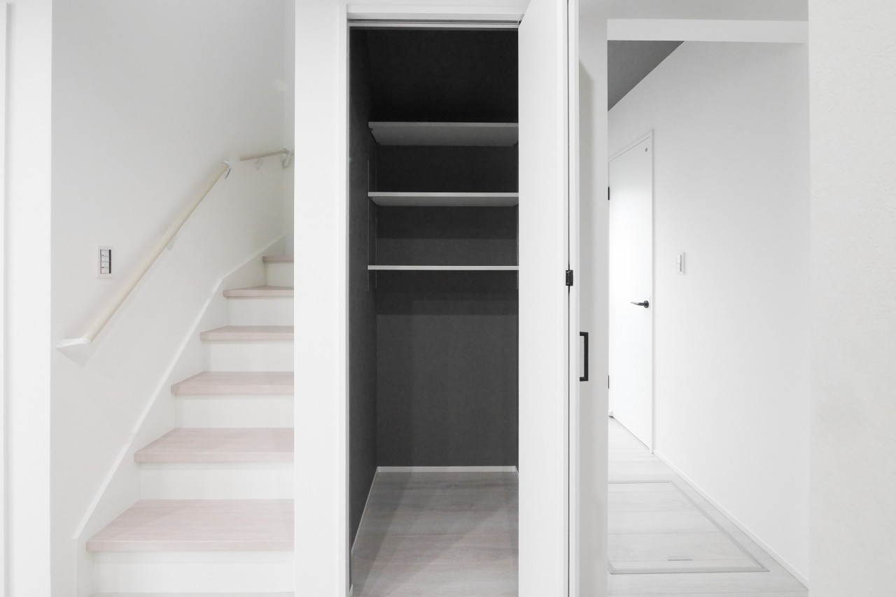 日用品やストック品をまとめて収納でき、生活感を感じさせない空間を保てます。