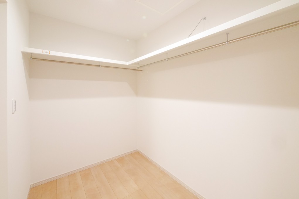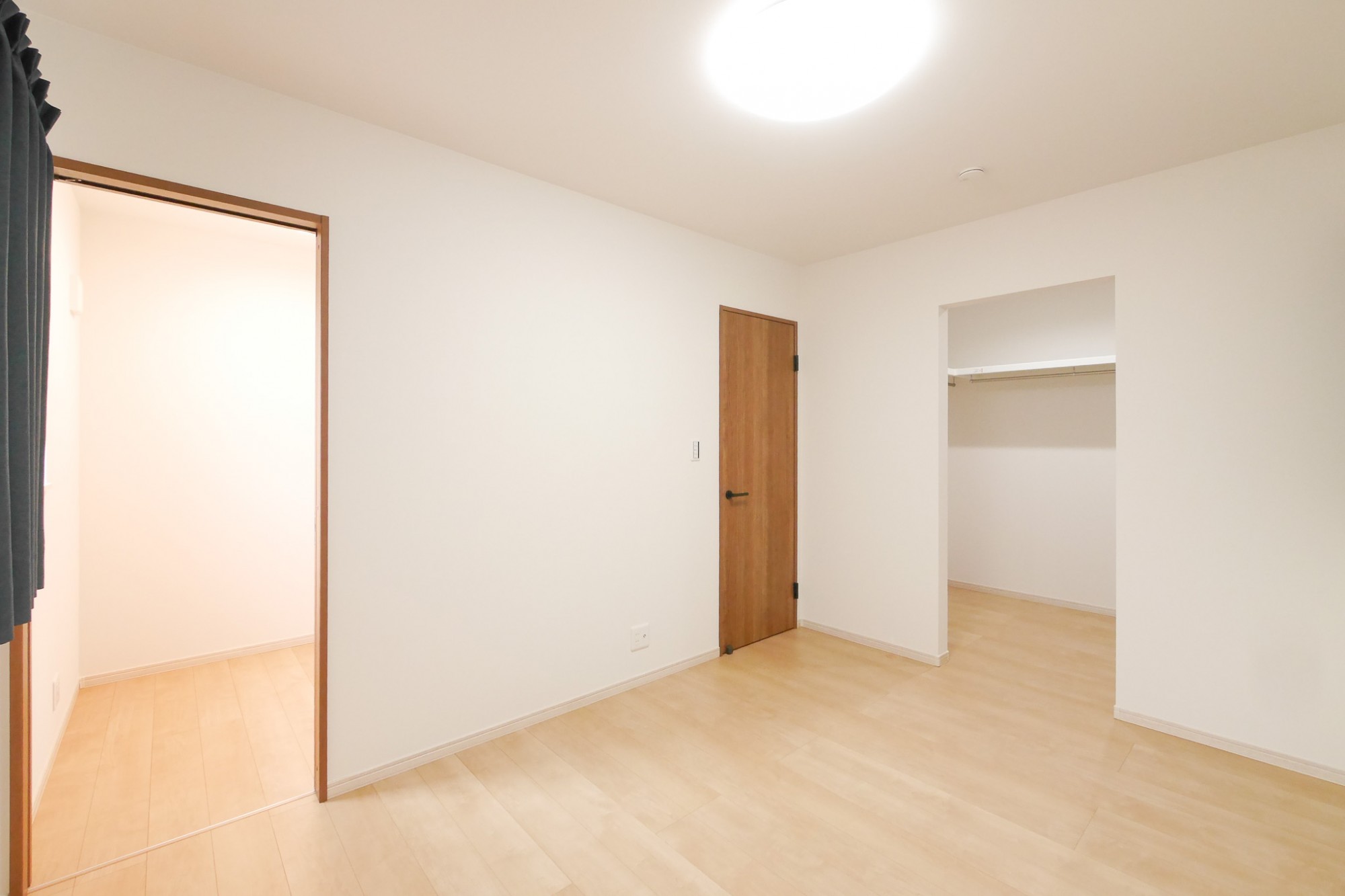 納戸を備えた洋室は、洋服や小物、季節の道具などをまとめて片づけられる、頼もしい収納空間。