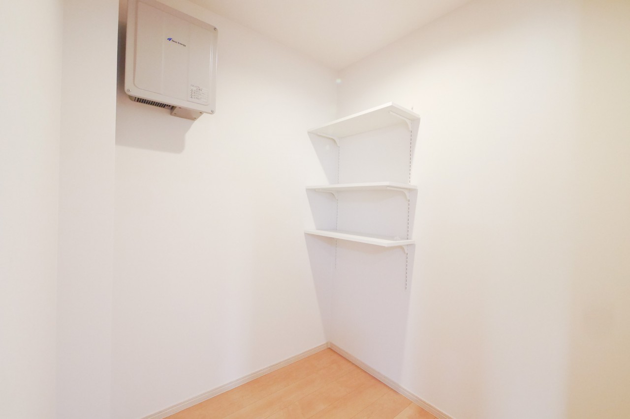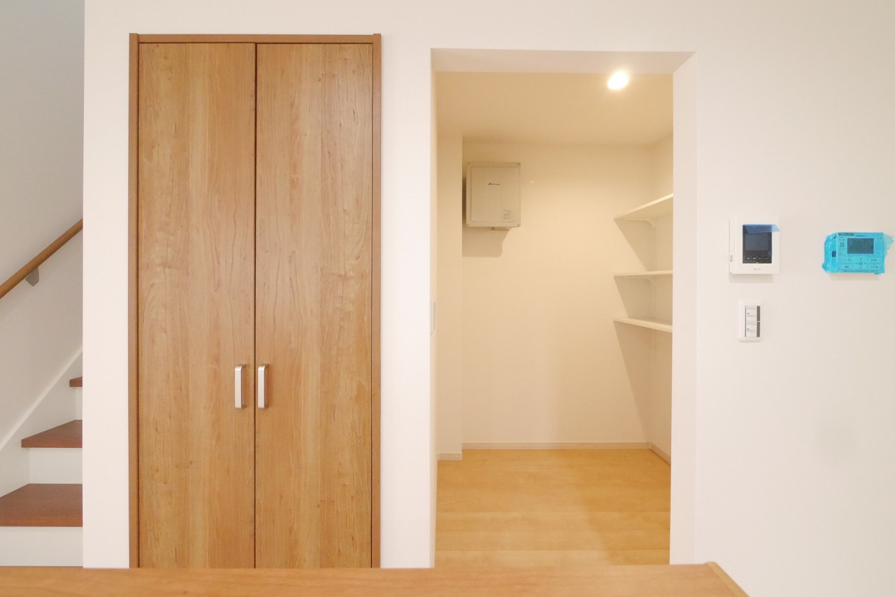 キッチン横にはウォークインクローゼットと収納スペースを完備。