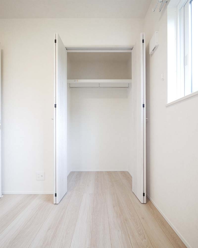 すっきりとしたデザインで、使い勝手の良いクローゼット。たっぷり収納できる空間が、お部屋をいつも整えます。