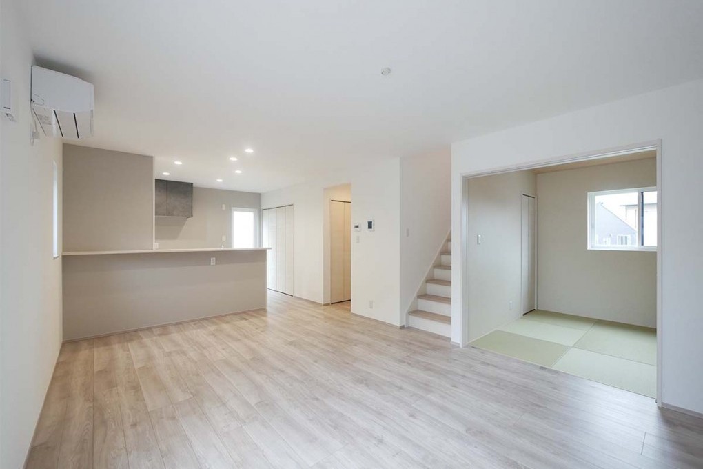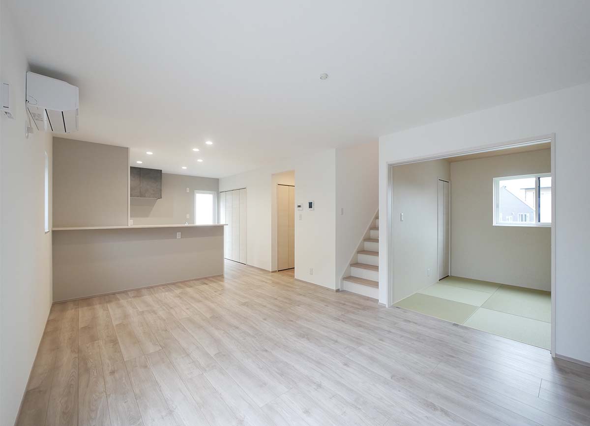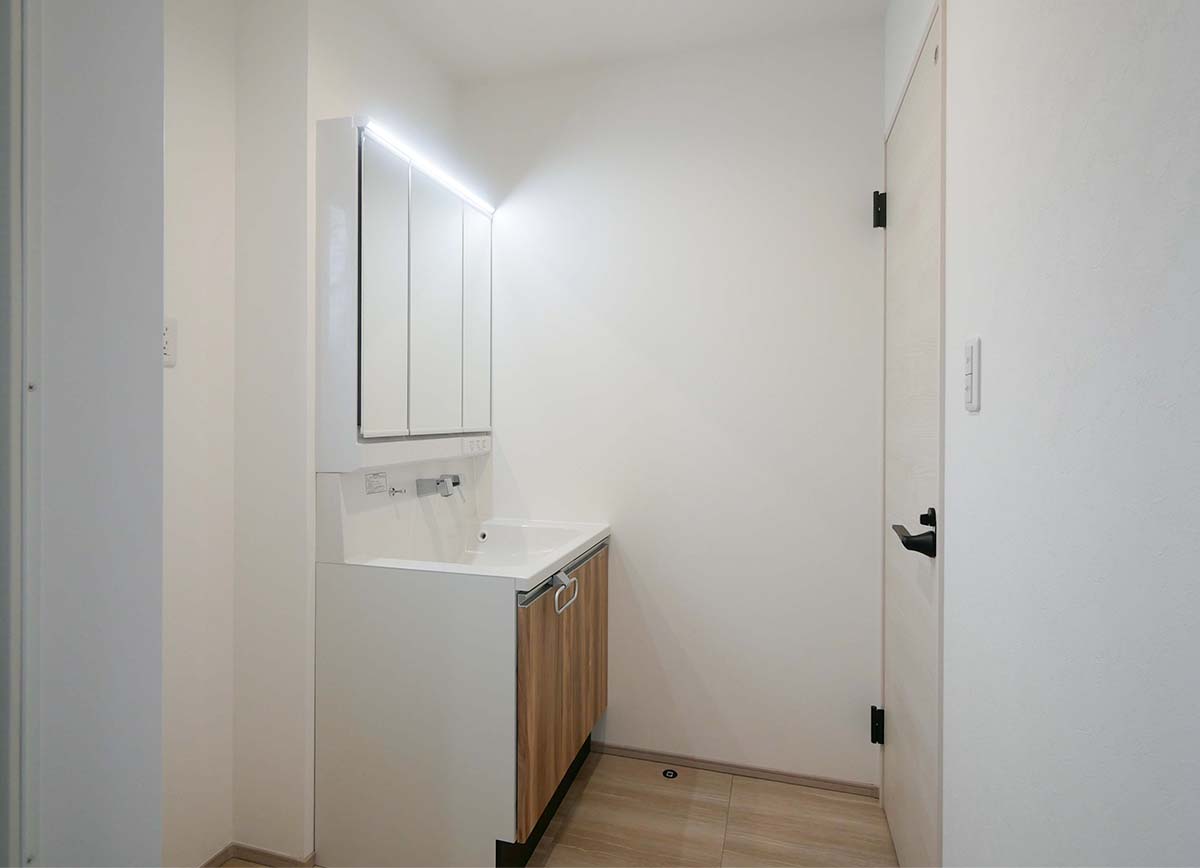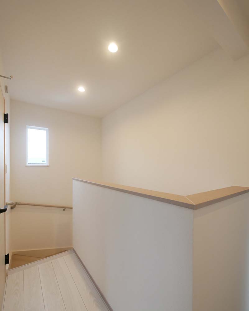 やわらかな照明が心地よい、明るい廊下。シンプルなデザインが空間に広がりを感じさせます。