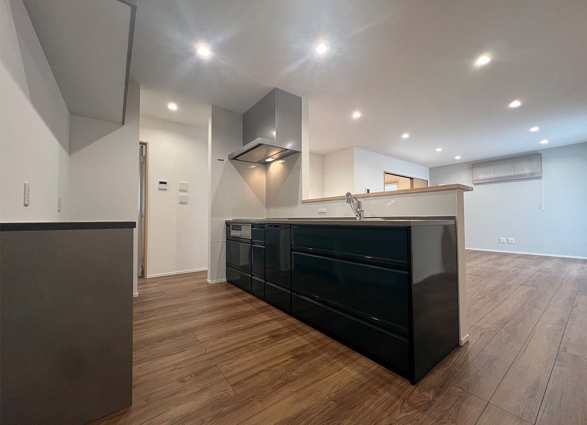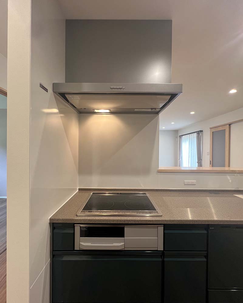 お手入れラクなフィルターレスレンジフードを採用。スタイリッシュなデザインで、キッチン空間をより快適に。