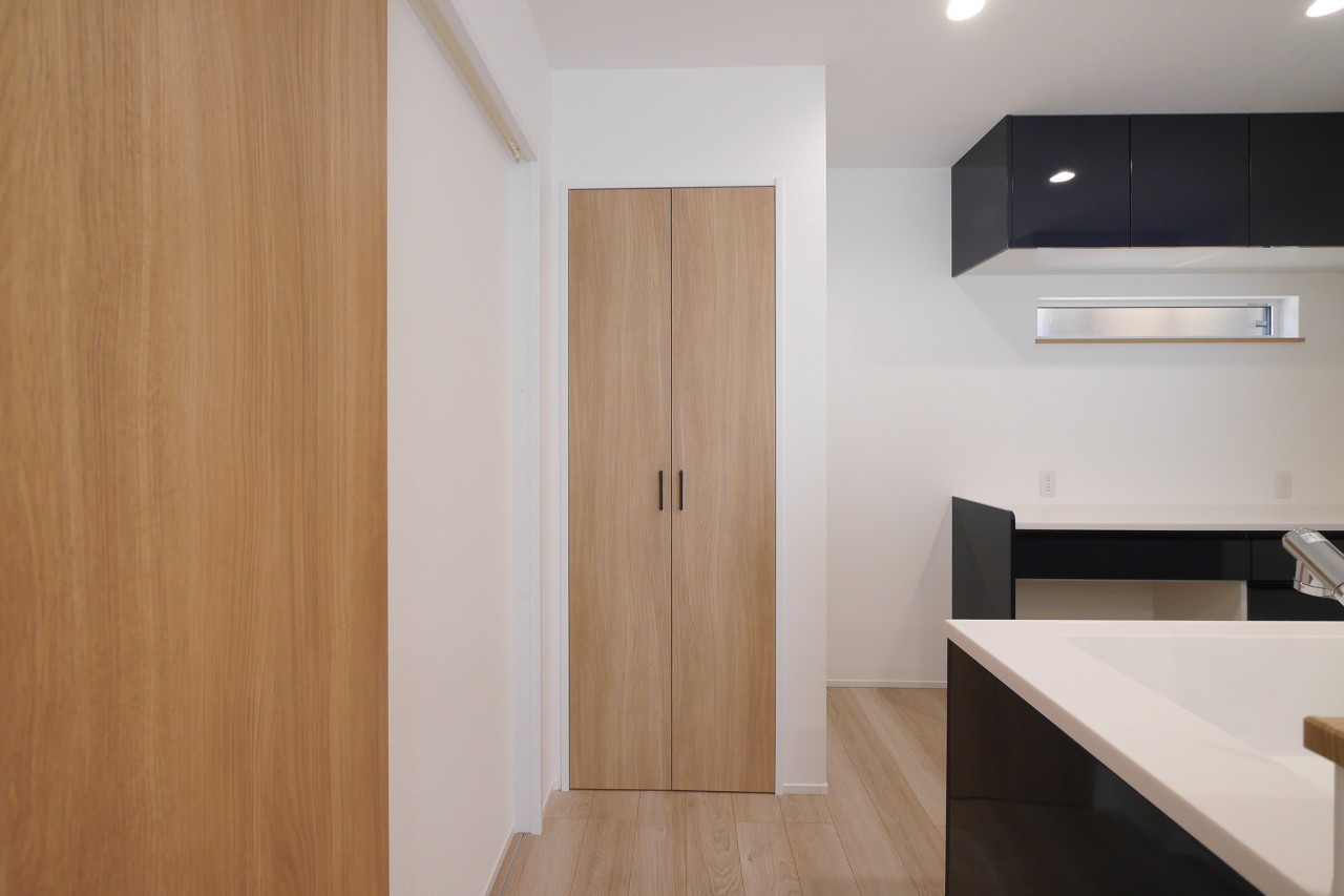 すぐに手が届く場所にある、便利なキッチン横収納。