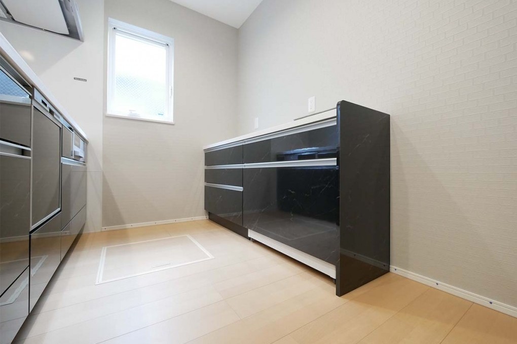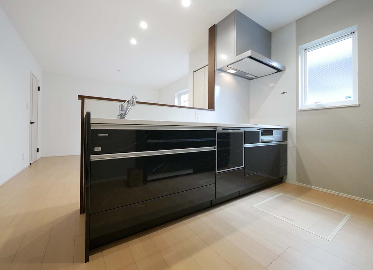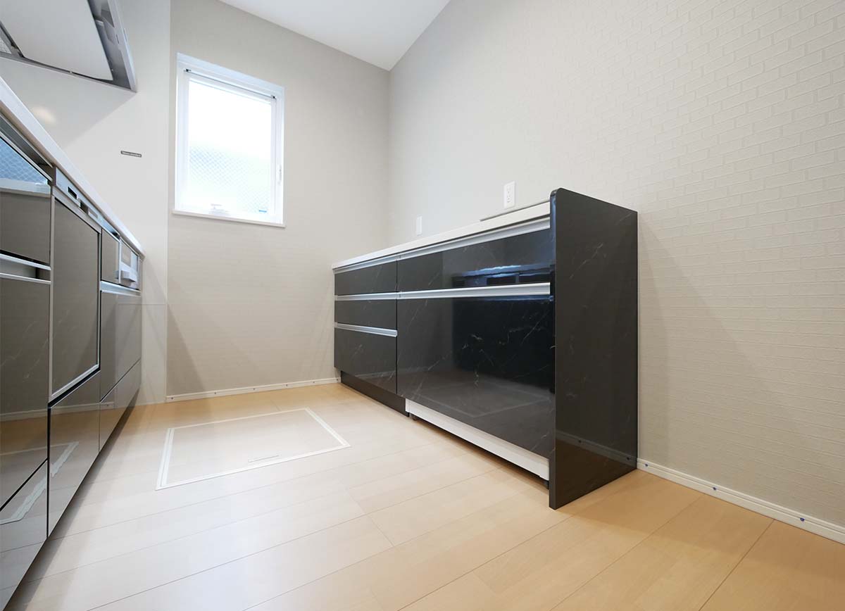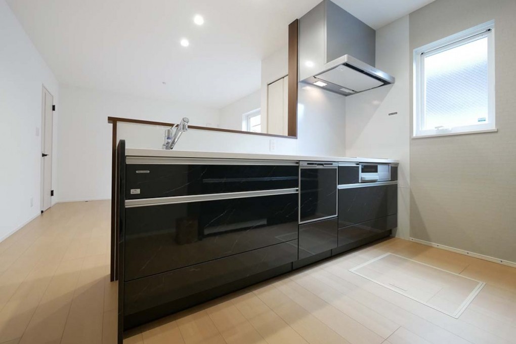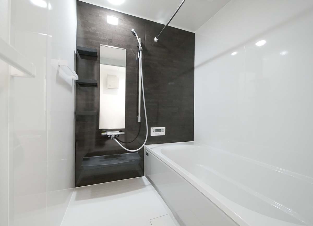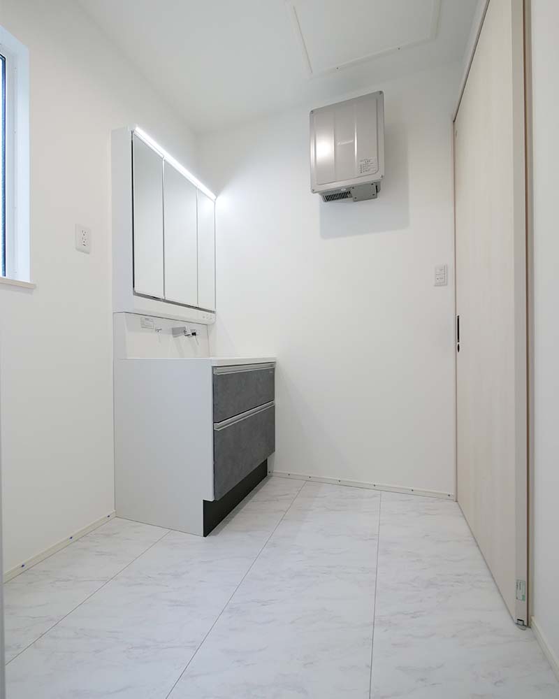 スタイリッシュな洗面台が映える、シンプルで機能的な空間。収納力も兼ね備え、毎日の身支度がスムーズになる使い勝手の良さが魅力です。