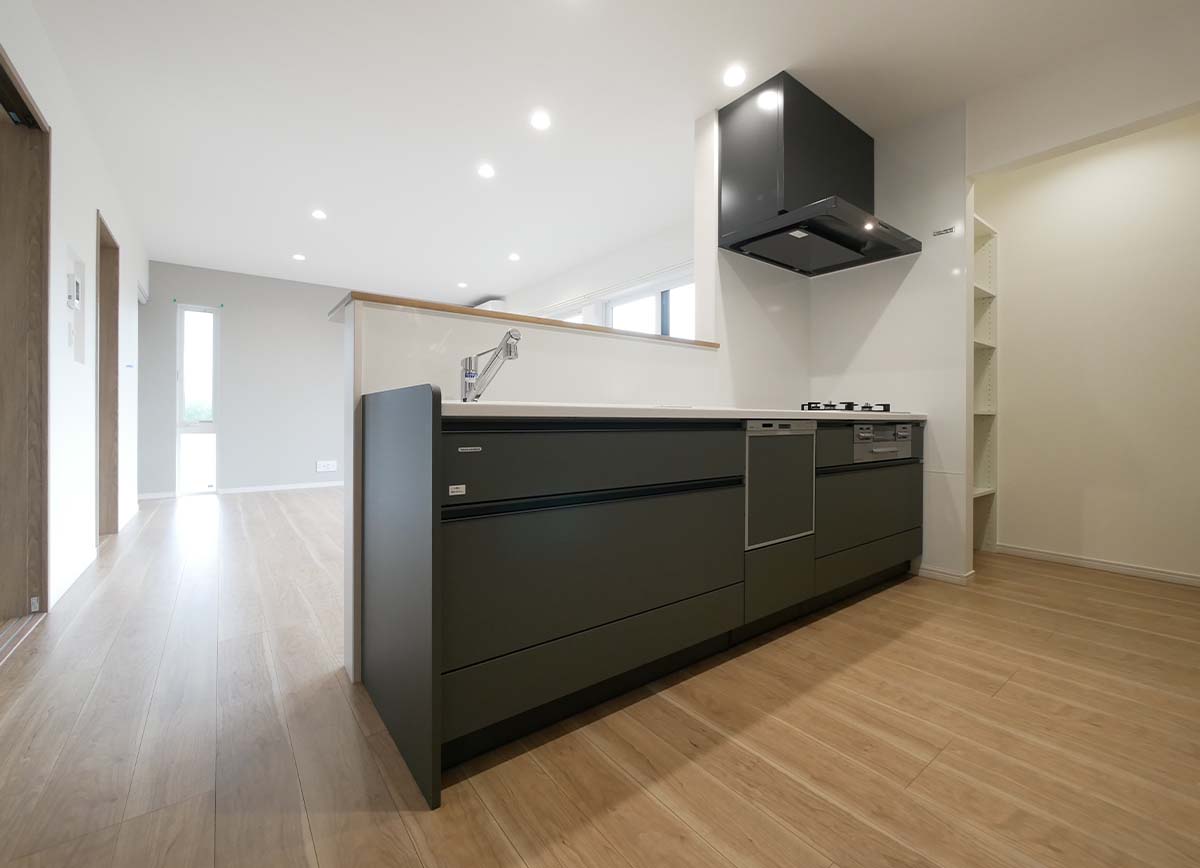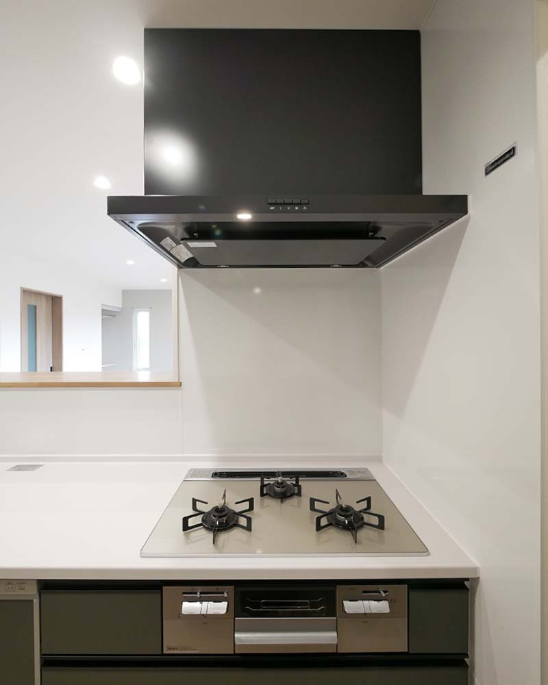 スタイリッシュなレンジフードと高性能ガスコンロが、キッチンの使い勝手を向上。料理の時間をより快適にする、頼れる設備が揃っています。