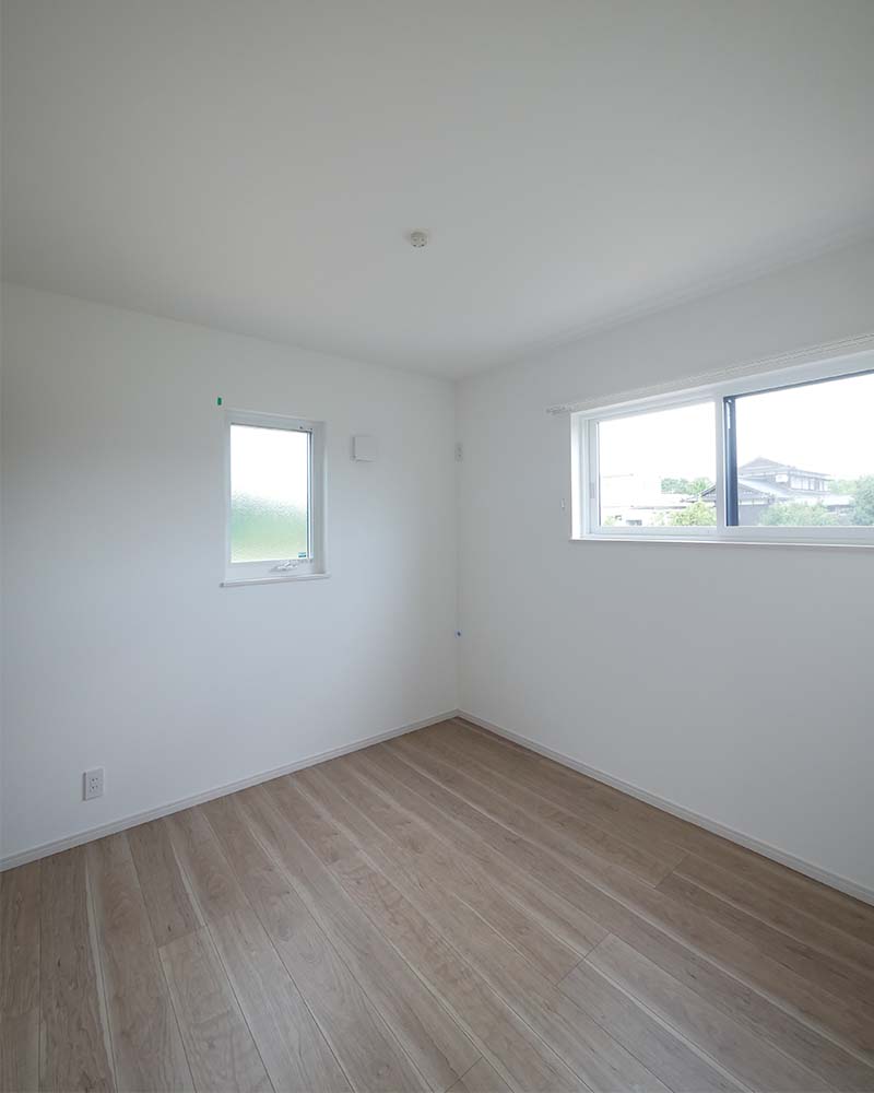 二面採光で心地よい光が広がる、明るくシンプルな洋室。寝室や子ども部屋、書斎としても使いやすい一部屋です。