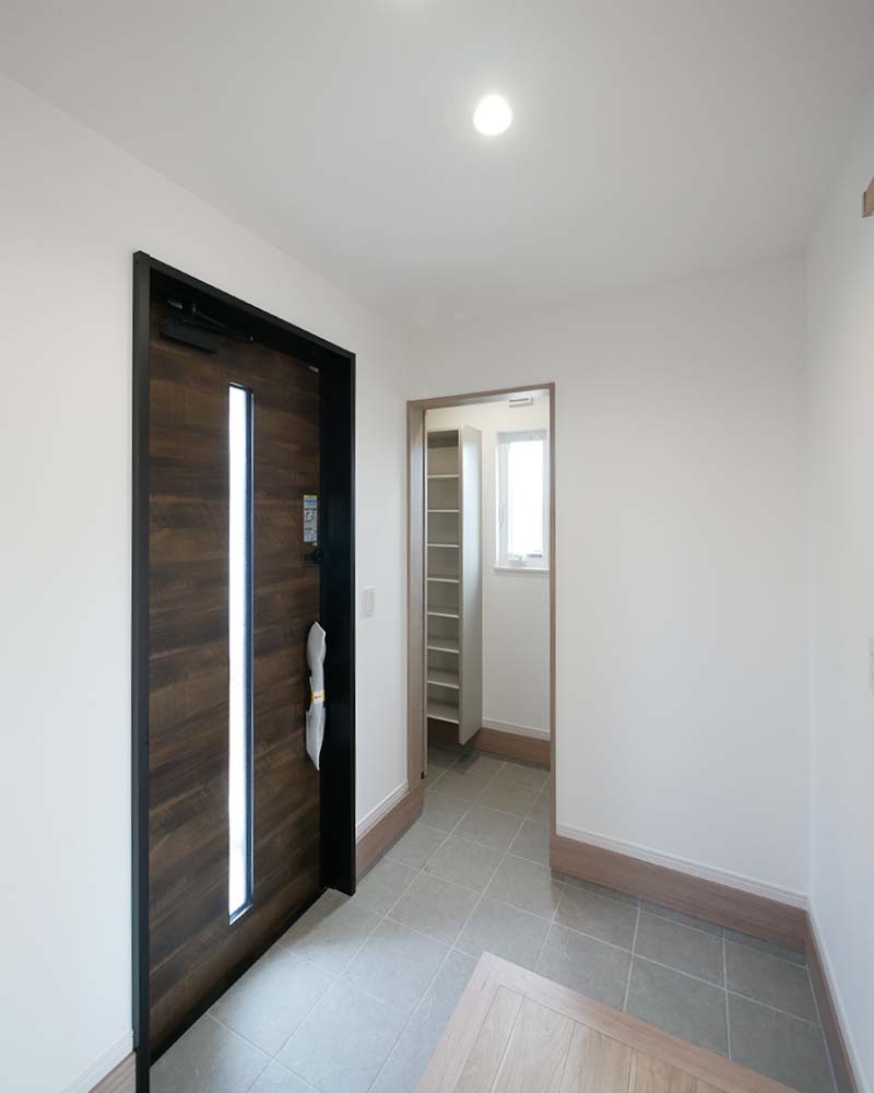 明るい光が差し込む清潔感のある玄関。収納スペースも充実しており、すっきり整った空間で気持ちよく出入りできます。