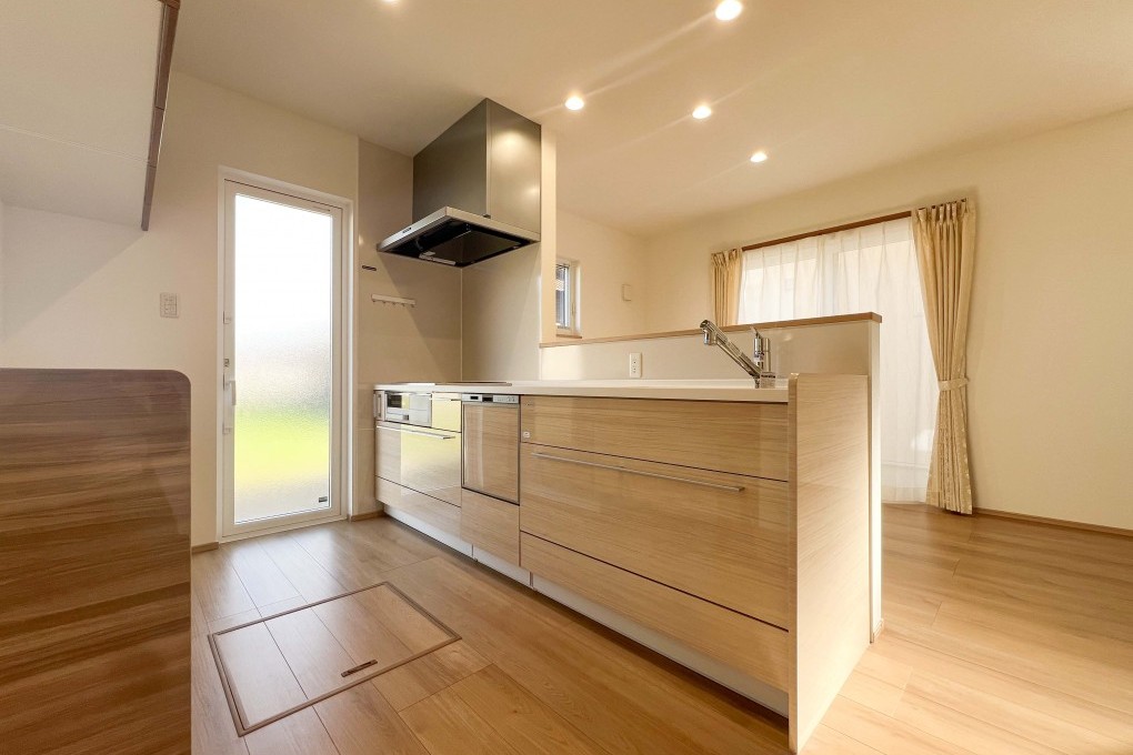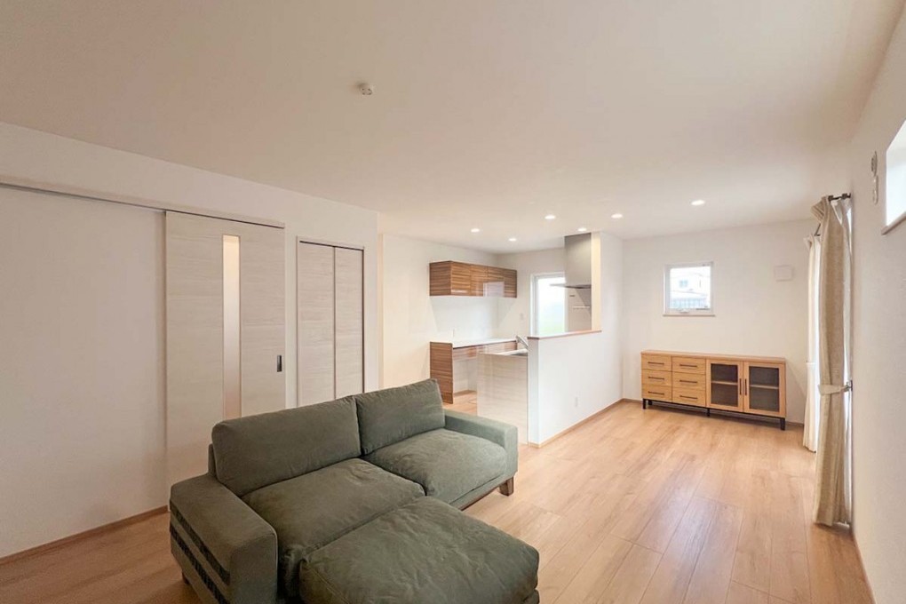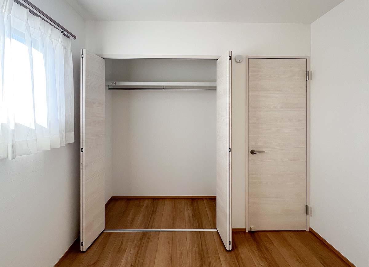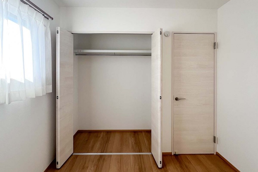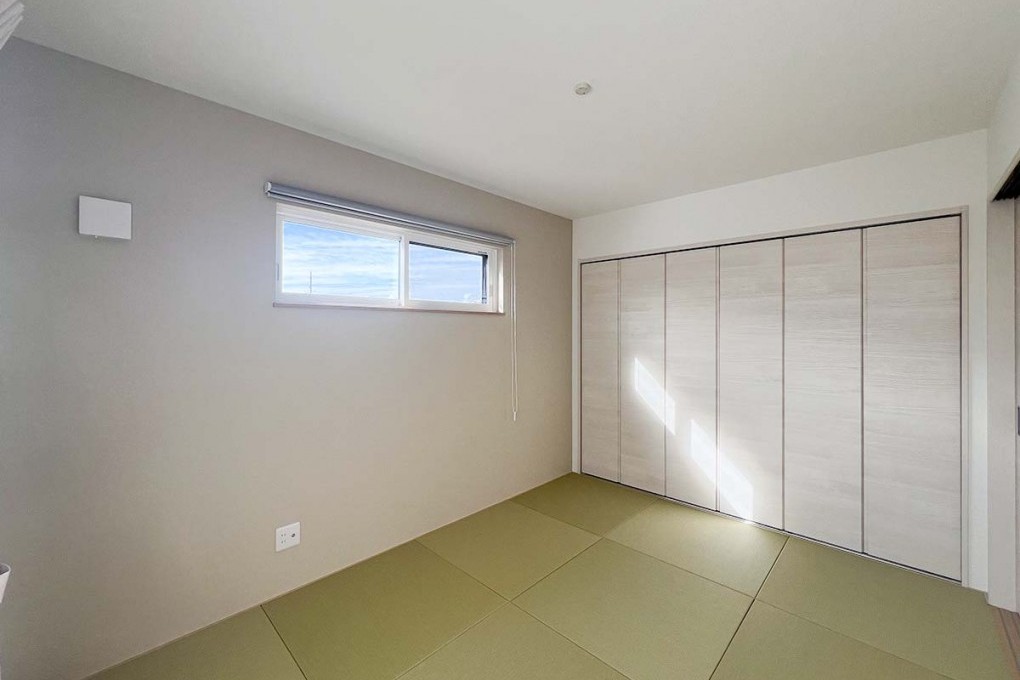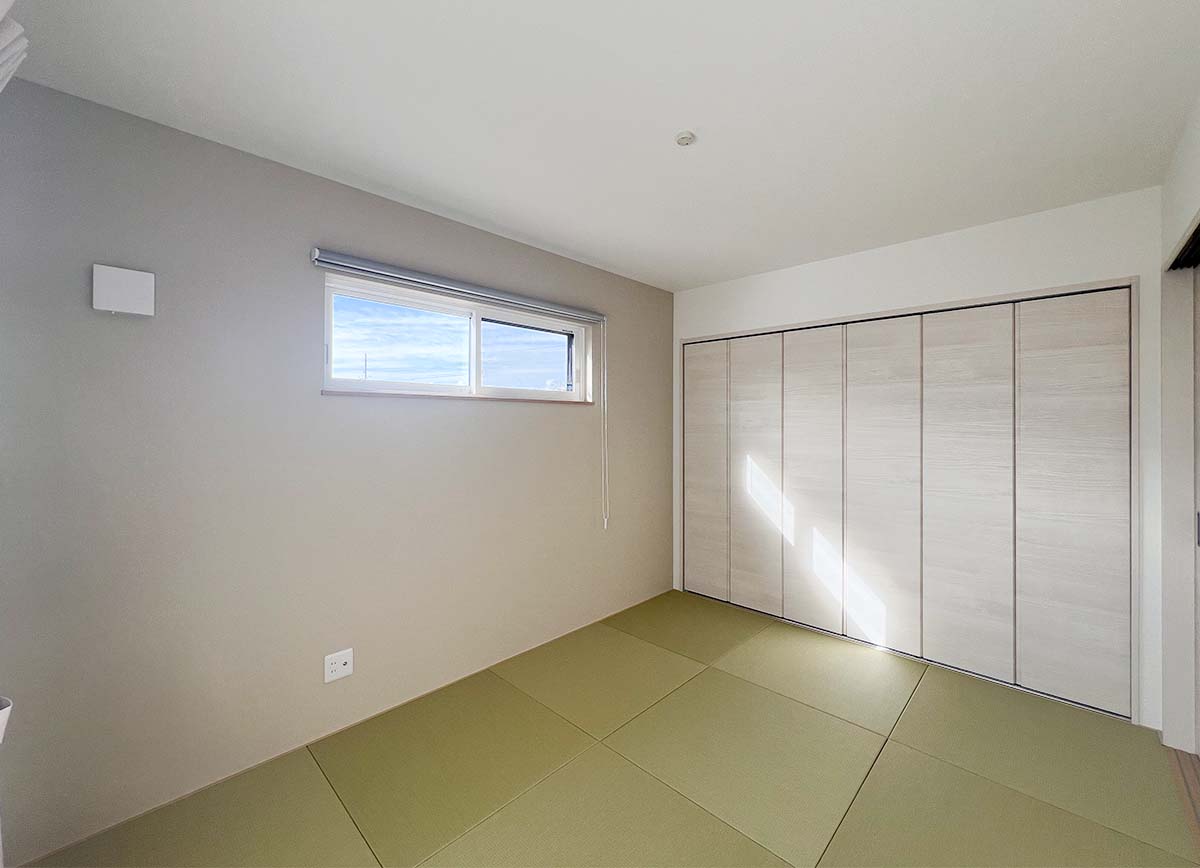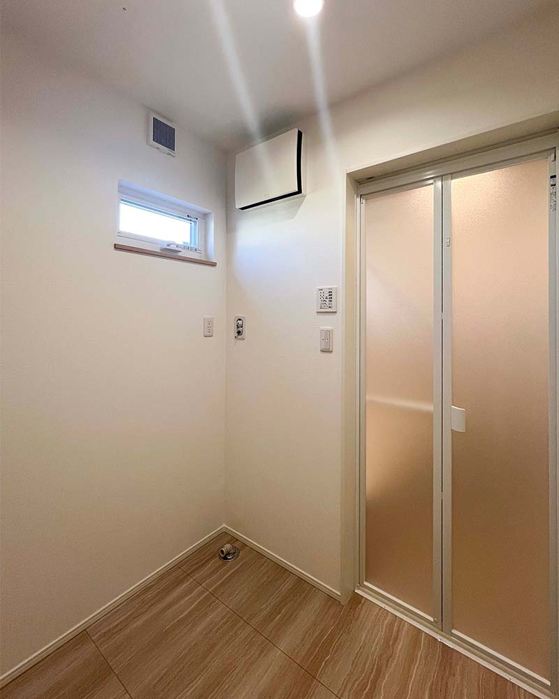 シンプルで清潔感あふれる脱衣スペース。窓から光が入り、毎日の家事も気持ちよくこなせる空間です。