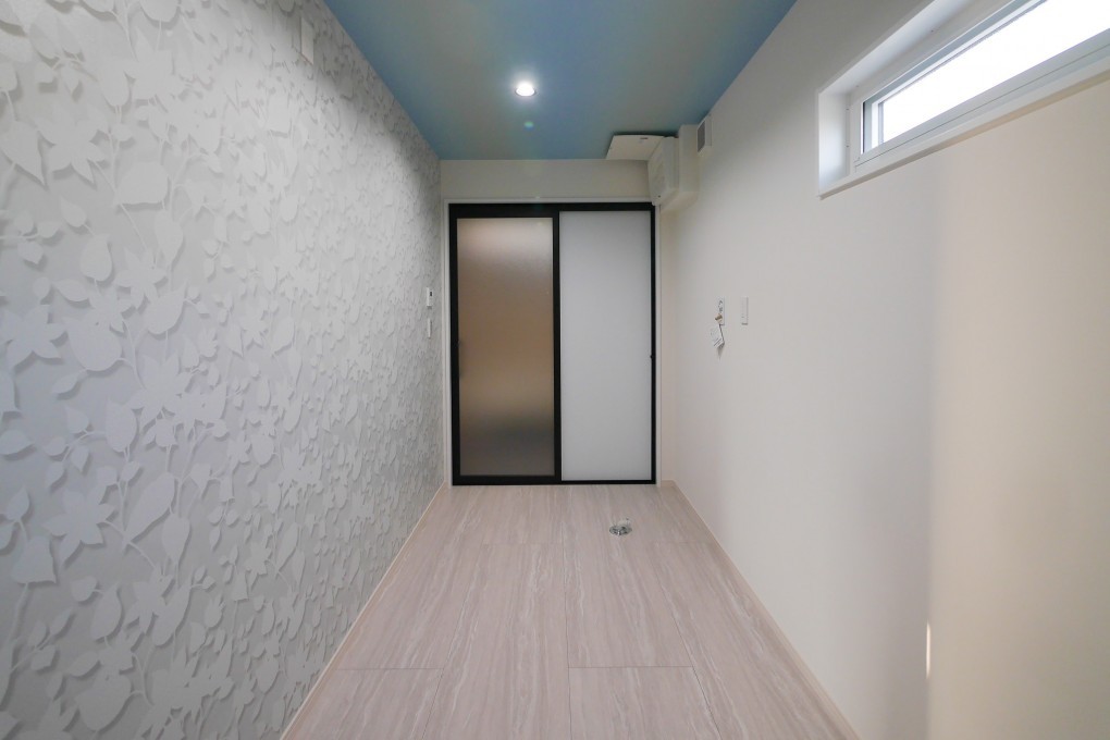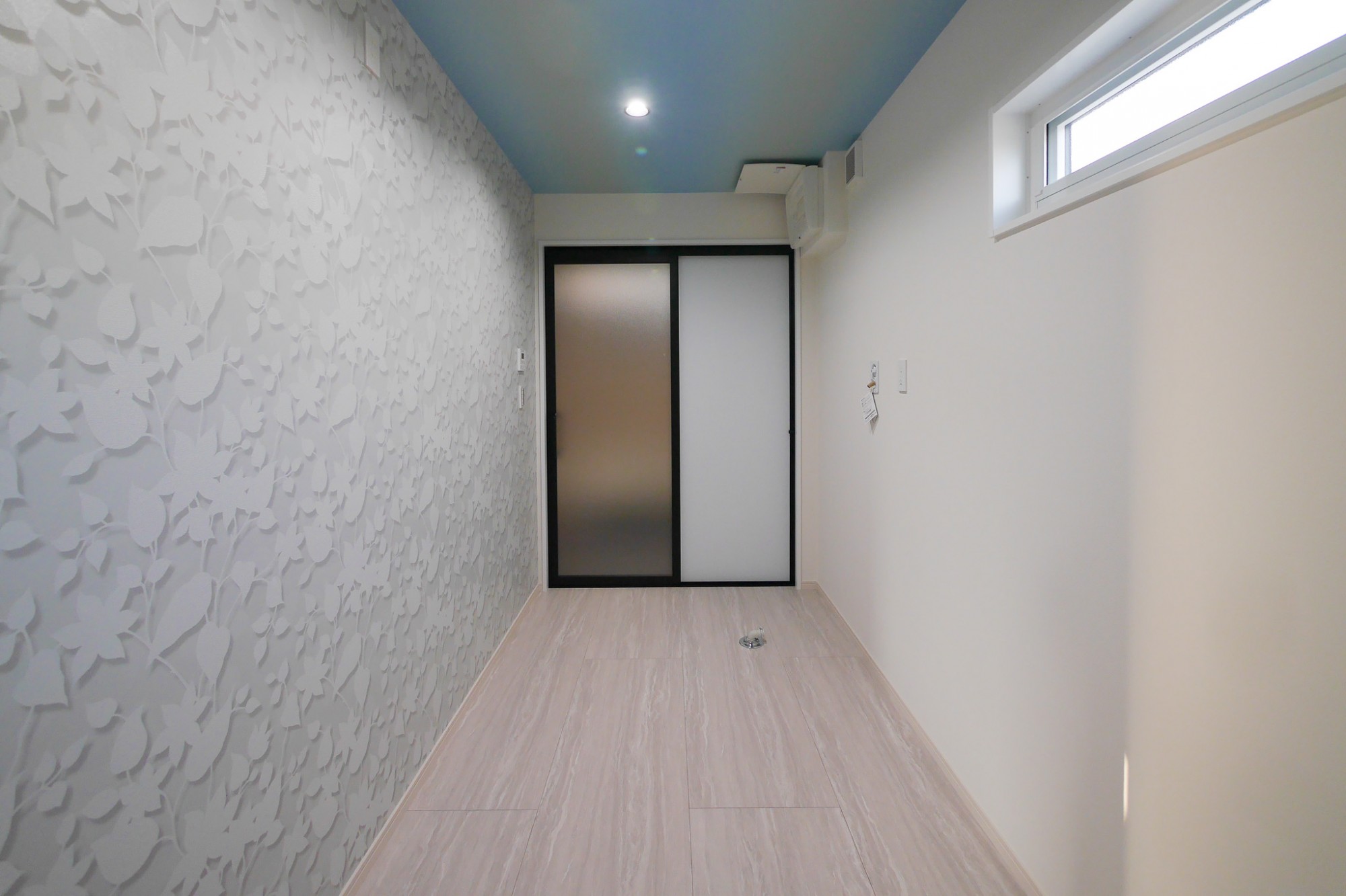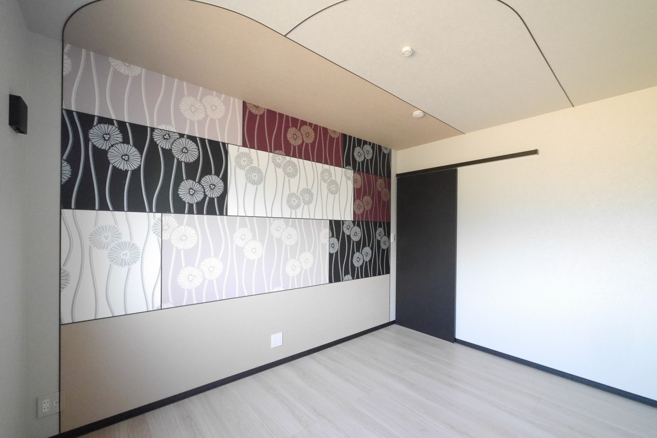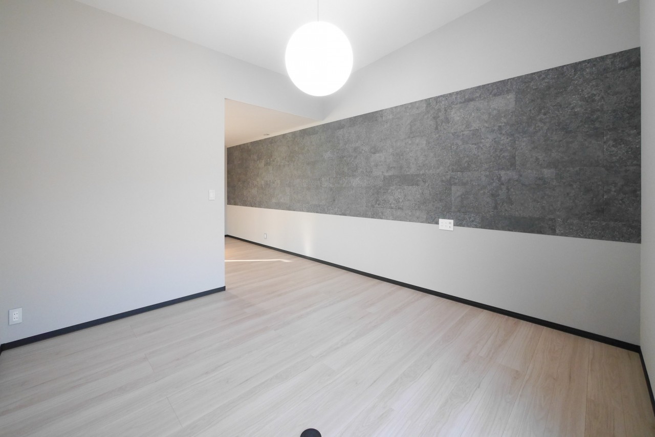 アクセントクロスが印象的な、上質な雰囲気のリビング。