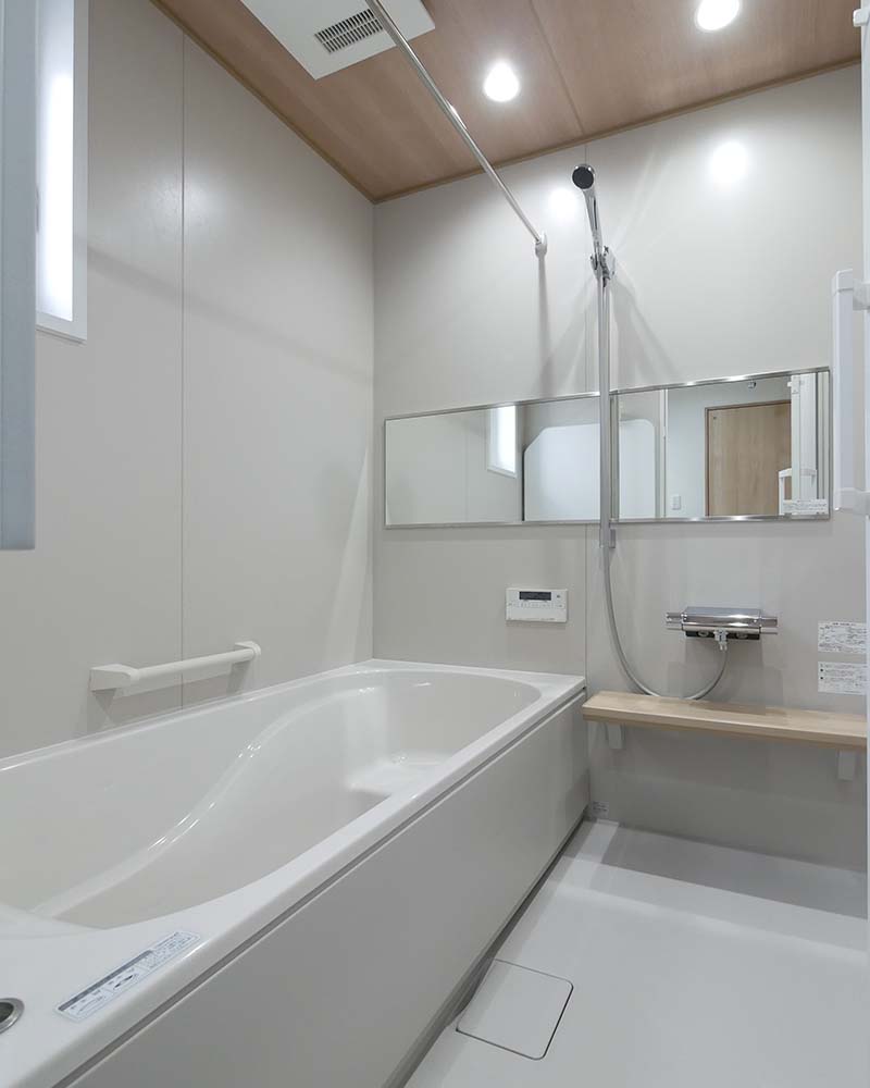 明るく清潔感のあるバスルーム。ゆったりとした浴槽とスッキリとしたデザインで、毎日のバスタイムが心地よい時間に。