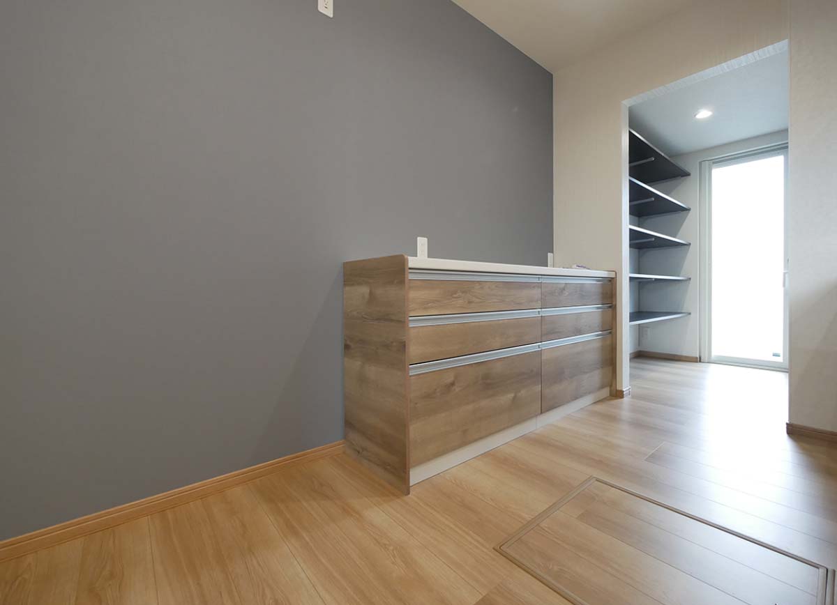 衣類をたっぷり掛けられる、使い勝手の良いウォークインクローゼット。ゆとりのある空間で、毎日の身支度がスムーズになります。